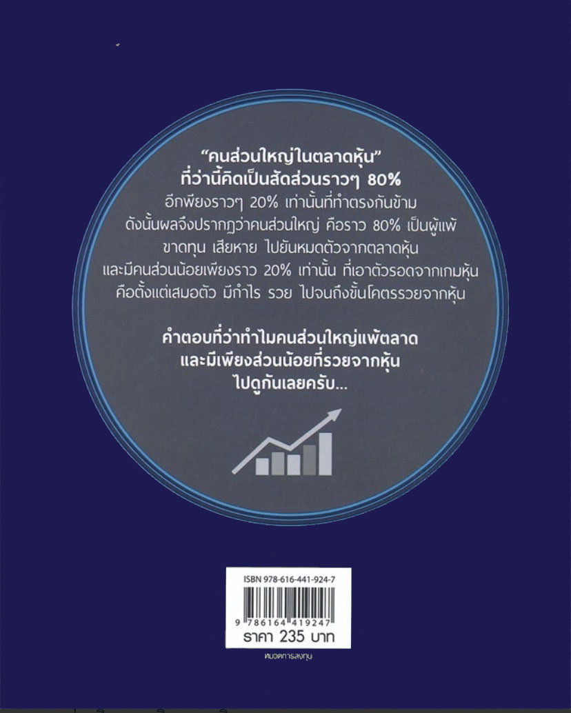 คนส่วนใหญ่ในตลาดหุ้น ที่ว่านี้คิดเป็นสัดส่วนราวๆ 80% อีกเพียงราวๆ 20% เท่านั้นที่ทำตรงกันข้าม ดังนั้นผลจึงปรากฎว่าคนส่วนใหญ่ คือราวๆ 80% เป็นผู้แพ้ ขาดทุนเสียหาย ไปยันหมดตัวจากตลาดหุ้น และมีคนส่วนน้อย ราว 20% เท่านั้น ที่เอาตัวรอดจากเกมหุ้น คือตั้งแต่เสมอตัว มีกำไร รวย ไปจนถึงขั้นโครตรวยจากหุ้น![]() ![]() ![]() ![]() ![]() ![]() ![]() ![]() ![]() ![]() ![]() ![]() ![]() ![]() ![]() ![]() |