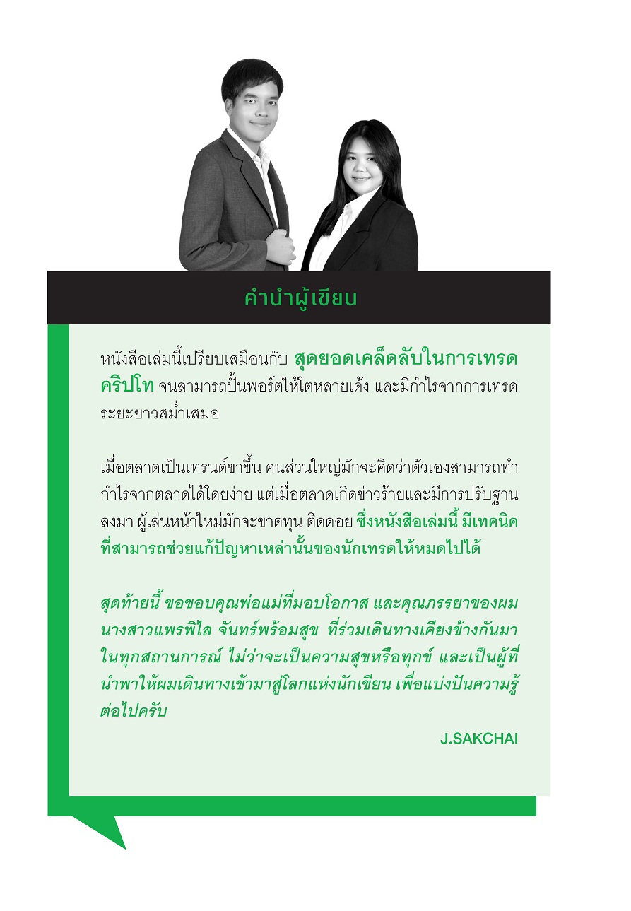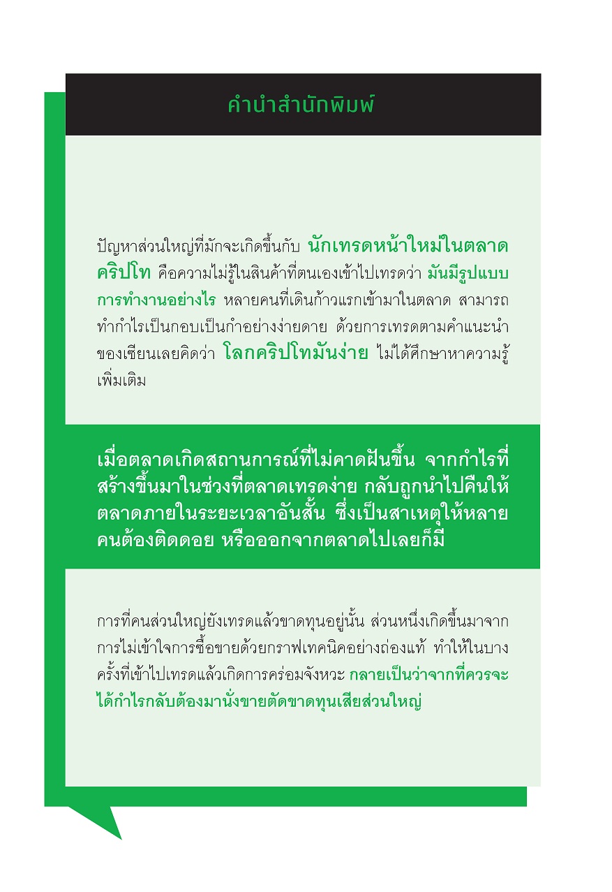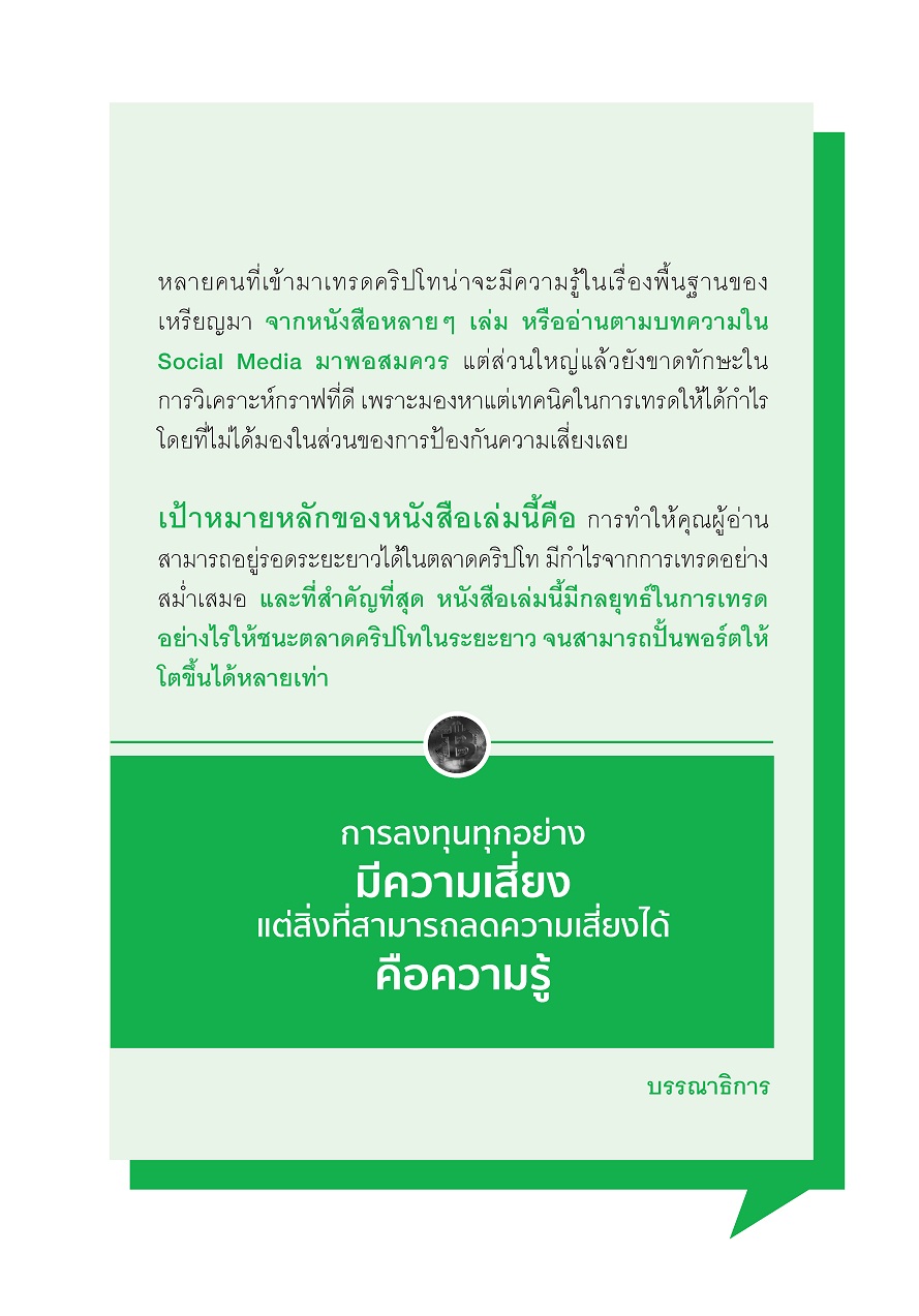 หนังสือเล่มนี้เปรียบเสมือนกับ สุดยอดเคล็ดลับในการเทรดคริปโท จนสามารถปั้นพอร์ตให้โตหลายเด้ง และมีกำไรจากการเทรดระยะยาวสม่ำเสมอ เมื่อตลาดเป็นเทรนด์ขาขึ้น คนส่วนใหญ่มักจะคิดว่าตัวเองสามารถทำกำไรจากตลาดได้โดยง่าย แต่เมื่อตลาดเกิดข่าวร้ายและมีการปรับฐานลงมา ผู้เล่นหน้าใหม่มักจะขาดทุน ติดดอย ซึ่งหนังสือเล่มนี้ มีเทคนิคที่สามารถช่วยแก้ปัญหาเหล่านั้นของนักเทรดให้หมดไปได้ เพราะการลงทุนทุกอย่างมีความเสี่ยง แต่สิ่งที่สามารถลดความเสี่ยงได้คือความรู้ ![]() ![]() ![]() ![]() ![]() ![]() ![]() ![]() ![]() ![]() ![]() ![]() ![]() ![]() |
