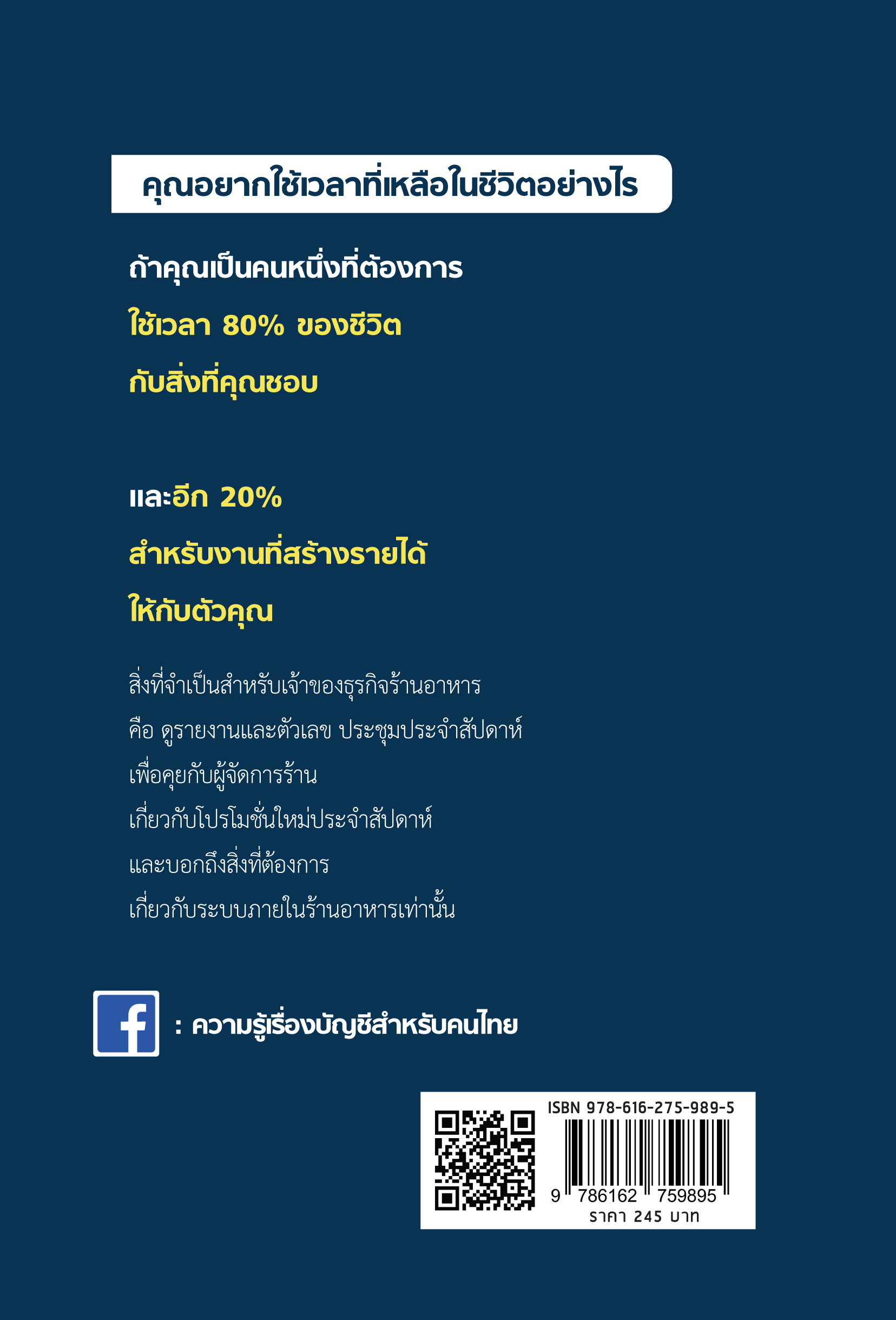 คุณอยากใช้เวลาที่เหลือในชีวิตอย่างไร ถ้าคุณเป็นคนหนึ่งที่ต้องการใช้เวลา 80% ของชีวิตกับสิ่งที่คุณชอบ และอีก 20% สำหรับงานที่สร้างรายได้ให้กับตัวคุณ สิ่งที่จำเป็นสำหรับเจ้าของธุรกิจร้านอาหาร คือดูรายงานและตัวเลข ประชุมประจำสัปดาห์เพื่อคุยกับผู้จัดการร้านเกี่ยวกับโปรโมชั่นใหม่ประจำสัปดาห์ และบอกถึงสิ่งที่ต้องการเกี่ยวกับระบบภายในร้านอาหารเท่านั้น ![]() ![]() ![]() ![]() ![]() ![]() ![]() ![]() |