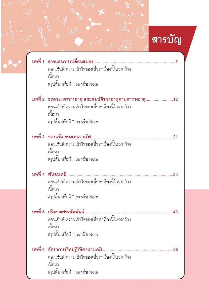 ภายในเล่มสรุปเนื้อหาเพื่อความเข้าใจที่ครบถ้วน อาทิ สารและการเปลี่ยนแปลง อะตอม ตารางธาตุ และสมบัติของธาตุตามตารางธาตุ ของแข็ง ของเหลว แก๊ส พันธะเคมี ปริมาณสารสัมพันธ์ฯลฯ ![]() ![]() ![]() ![]() ![]() ![]() ![]() ![]() ![]() ![]() ![]() ![]() |