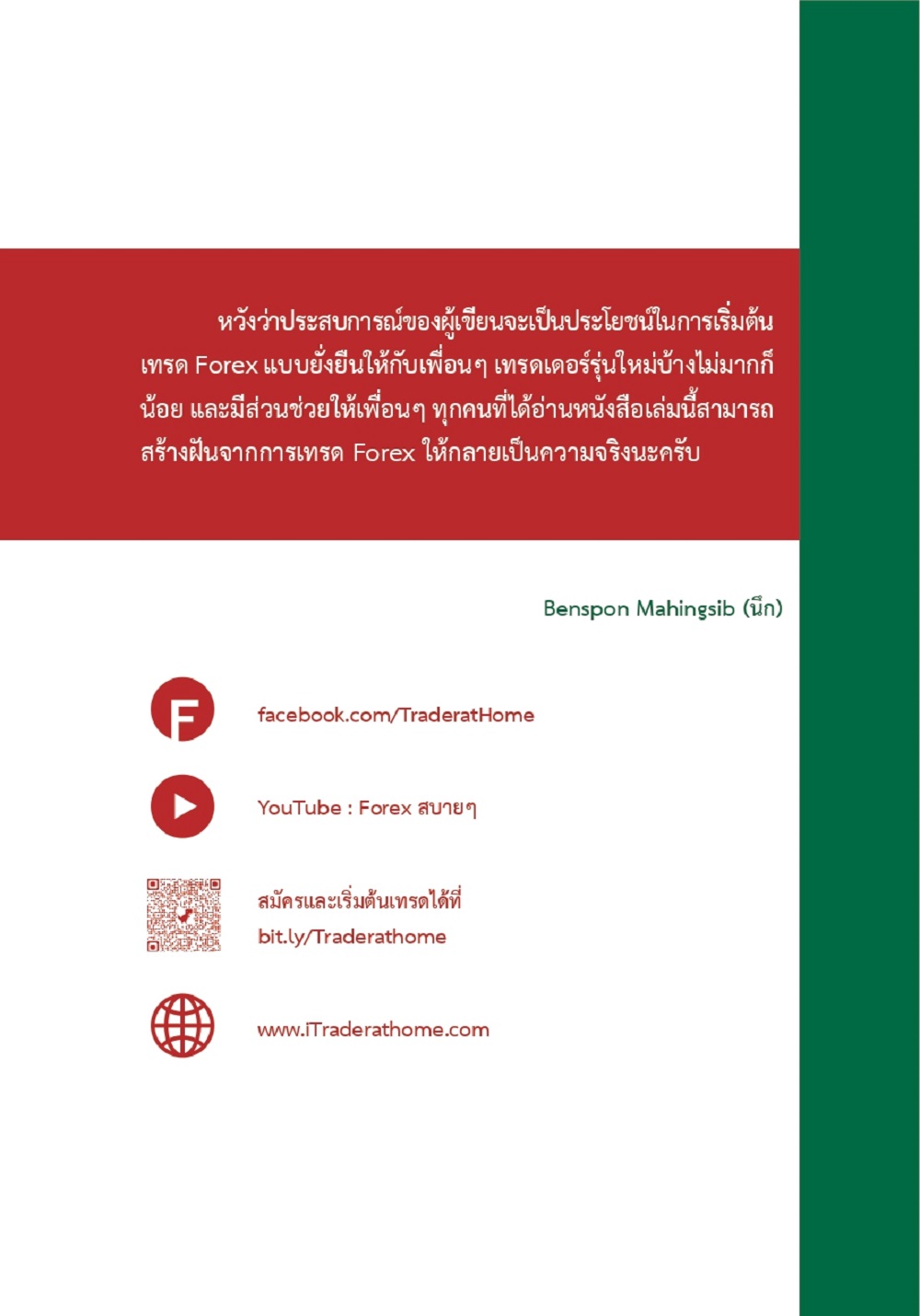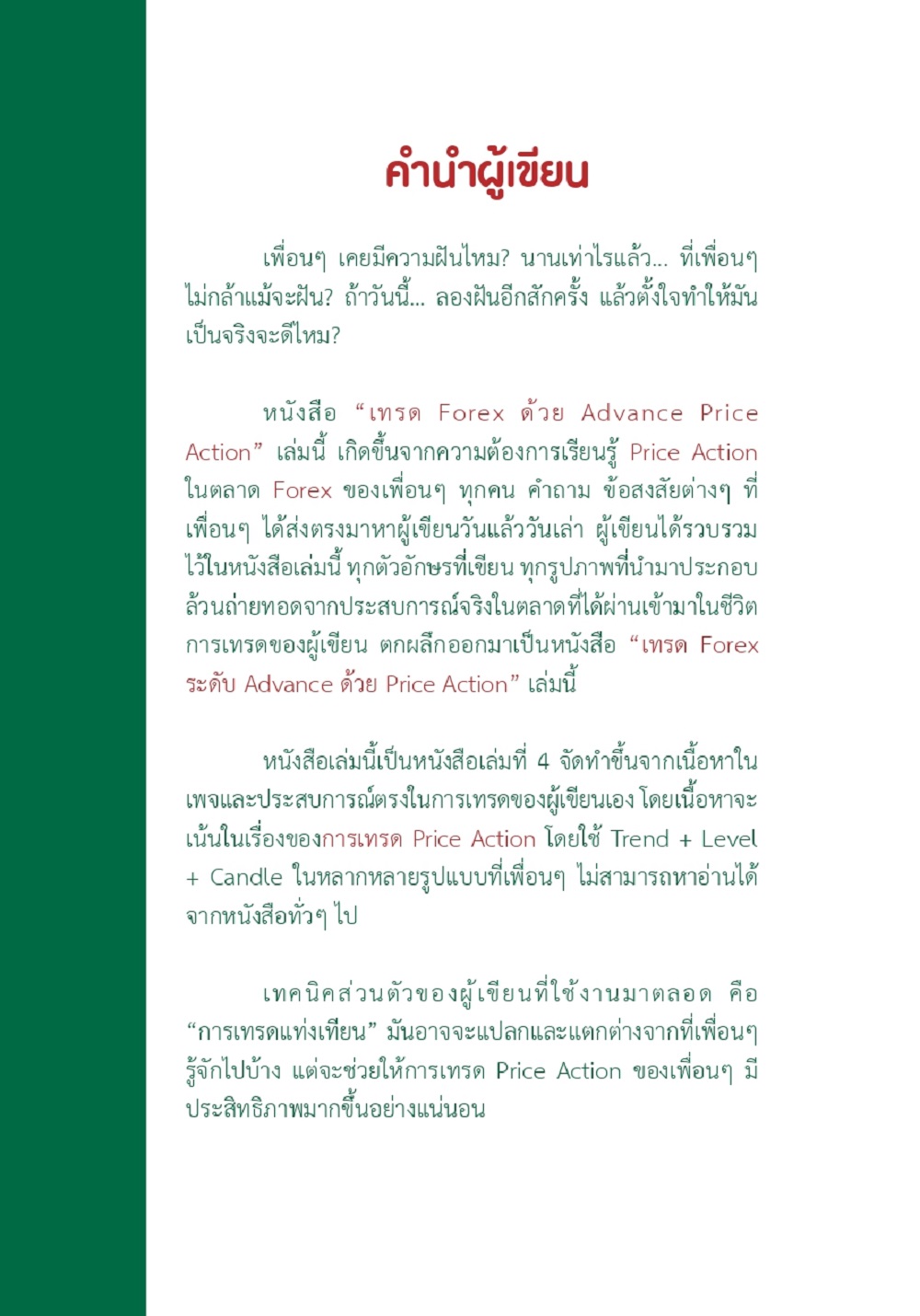 หนังสือ “เทรด Forex ระดับ Advance ด้วย Price Action” เล่มนี้ เกิดจากความต้องการเรียนรู้ Price Action.ในตลาด Forex ของทุกคน คำถาม ข้อสงสัยต่างๆ ทีได้ส่งตรงมาหาผู้เขียนวันแล้ววันเล่า ผู้เขียนได้รวบรวมไว้ในหนังสือเล่มนี้ ทุกตัวอักษรที่เขียน ทุกรูปภาพที่นำมาประกอบ ล้วนถ่ายทอดจากประสบการณ์จริงในคลาดที่ได้ผ่านเข้ามาในชีวิตการเทรดของผู้เขียน ตกผลึกออกมาเป็นหนังสือเล่มนี้ ![]() ![]() ![]() ![]() ![]() ![]() ![]() ![]() ![]() ![]() ![]() ![]() ![]() ![]() ![]() ![]() |