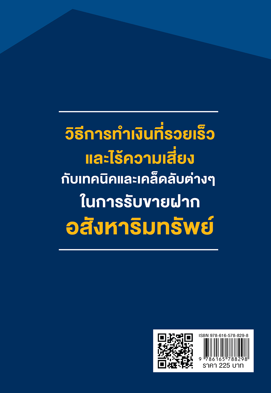 คุณจะเชื่อหรือไม่ว่า การขายฝาก คือธุรกิจหนึ่งเดียว ที่ทำเงินได้ดีในช่วงที่เศรษฐกิจกำลังซบเซา หรือกำลังตกต่ำ ในแบบที่ไม่มีความเสี่ยงใดๆ เลย เพียงแต่ผู้คิดจะทำ ต้องมีความรู้ ความเข้าใจเป็นอย่างดีเสียก่อน และในหนังสือเล่มนี้ ได้รวบรวมเรื่องที่น่ารู้ไว้มากมาย