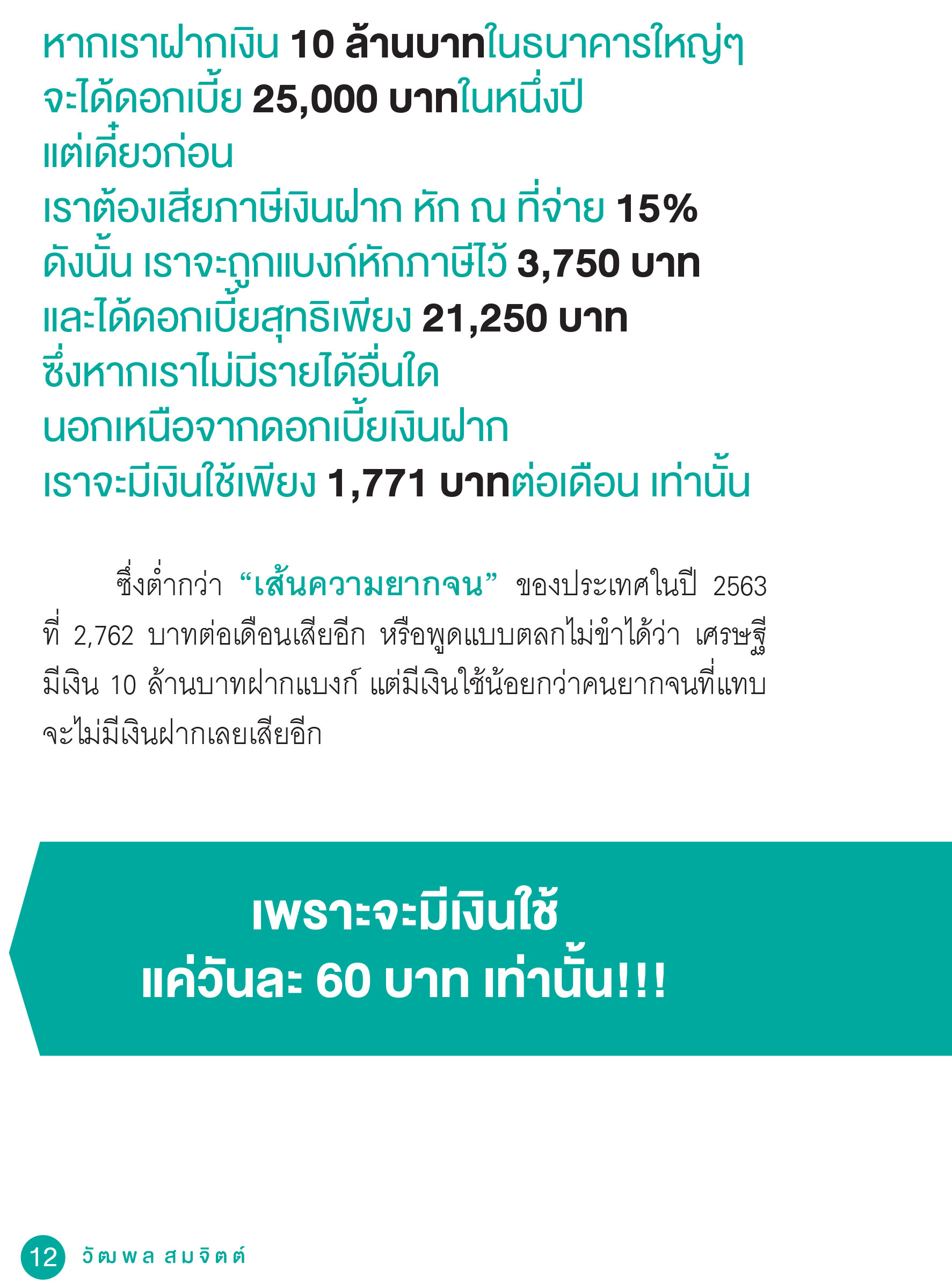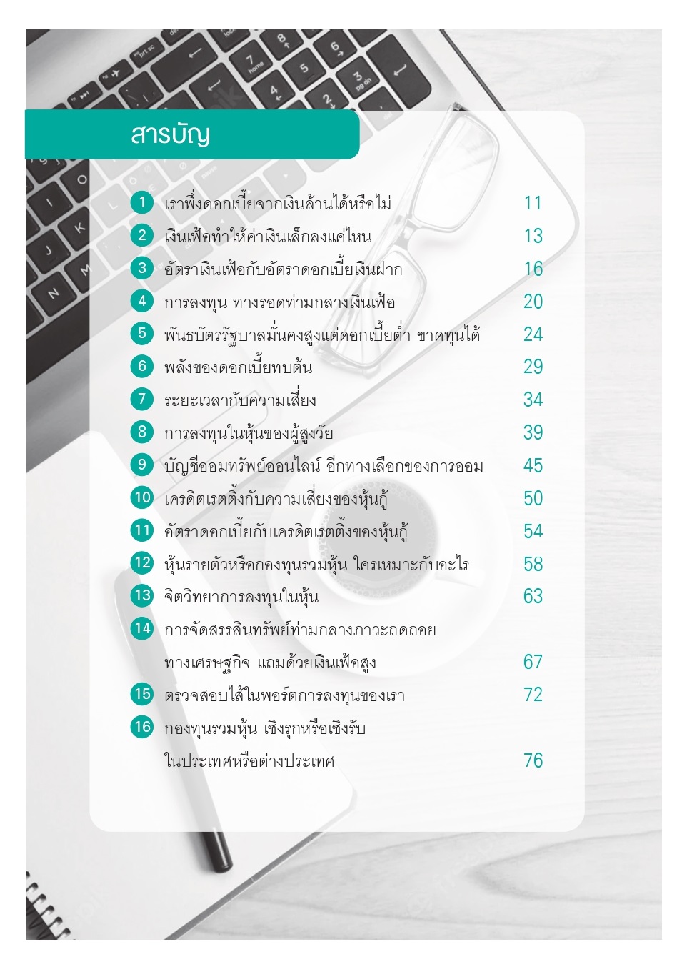 ชีวิตในวัยเกษียณของคุณเป็นอย่างไร บางคนอาจฝัถึงการใช้ชีวิตตามใจตัวเอง อาจมีบ้านริมทะเล ได้ท่องเที่ยวต่างประเทศ ใช้ชีวิตอย่างสงบสุข ไม่ต้องวุ่นวายเคร่งเครียดกับการทำงานอีกต่อไป แต่คุณมั่นใจไหมว่าเงินเก็บและเงนลงทุนของคุณจะสามารถทำให้คุณใช้ชีวิตอย่างที่ฝันไว้ได้ หนังสือเล่มนี้ผู้เขียนได้นำเสนอแนวคิดและวิธีการจากประสบการณ์ของตนเอง ถึงวิธีการลงทุนและบริหารให้เงินงอกเงยในระยะยาว แม้แต่ในยามที่เกษียณจากการทำงานแล้วก็จะไม่ต้องกังวลว่าเงินนั้นจะงอกเงยไม่ทันแต่อย่างใด