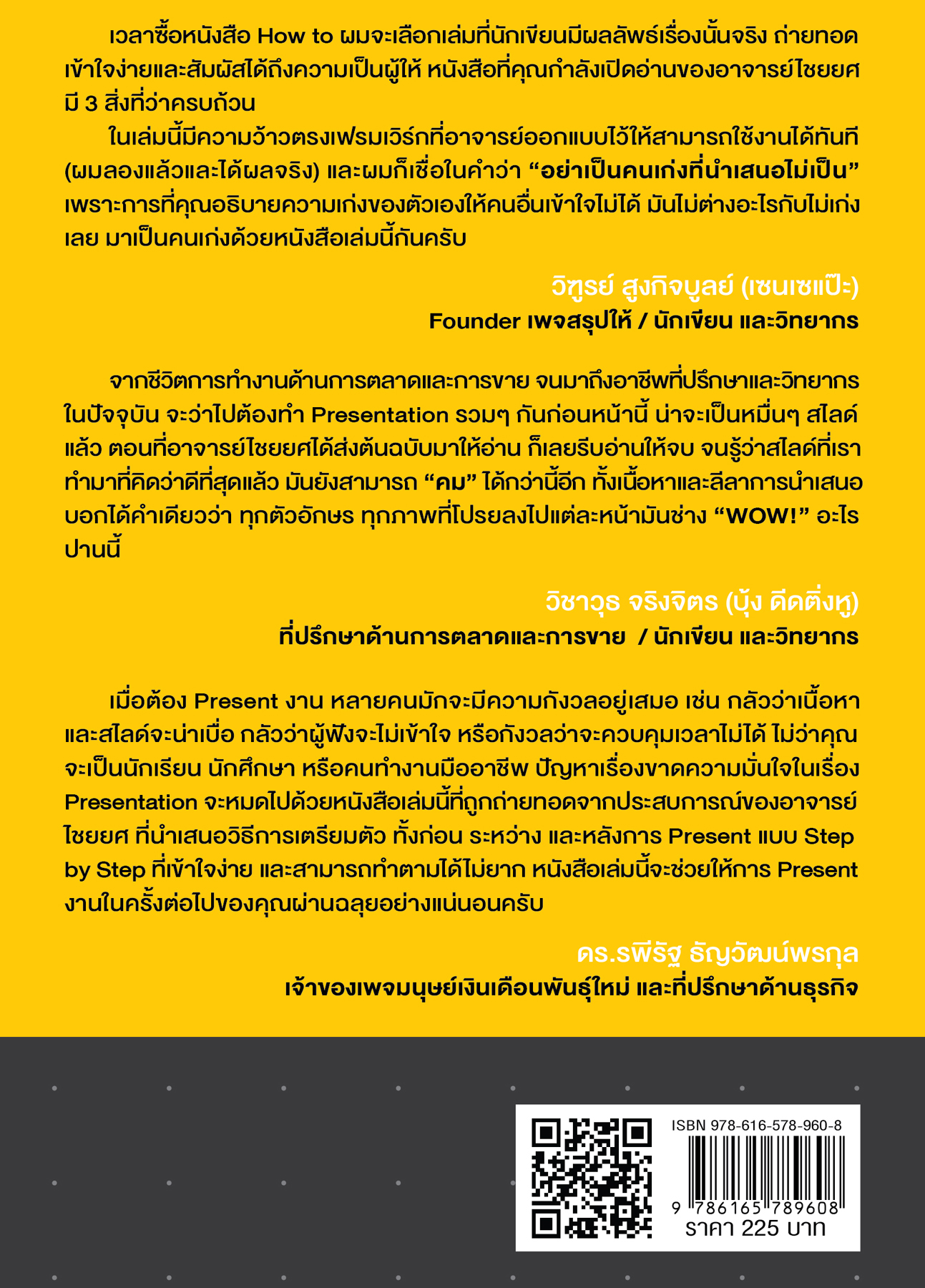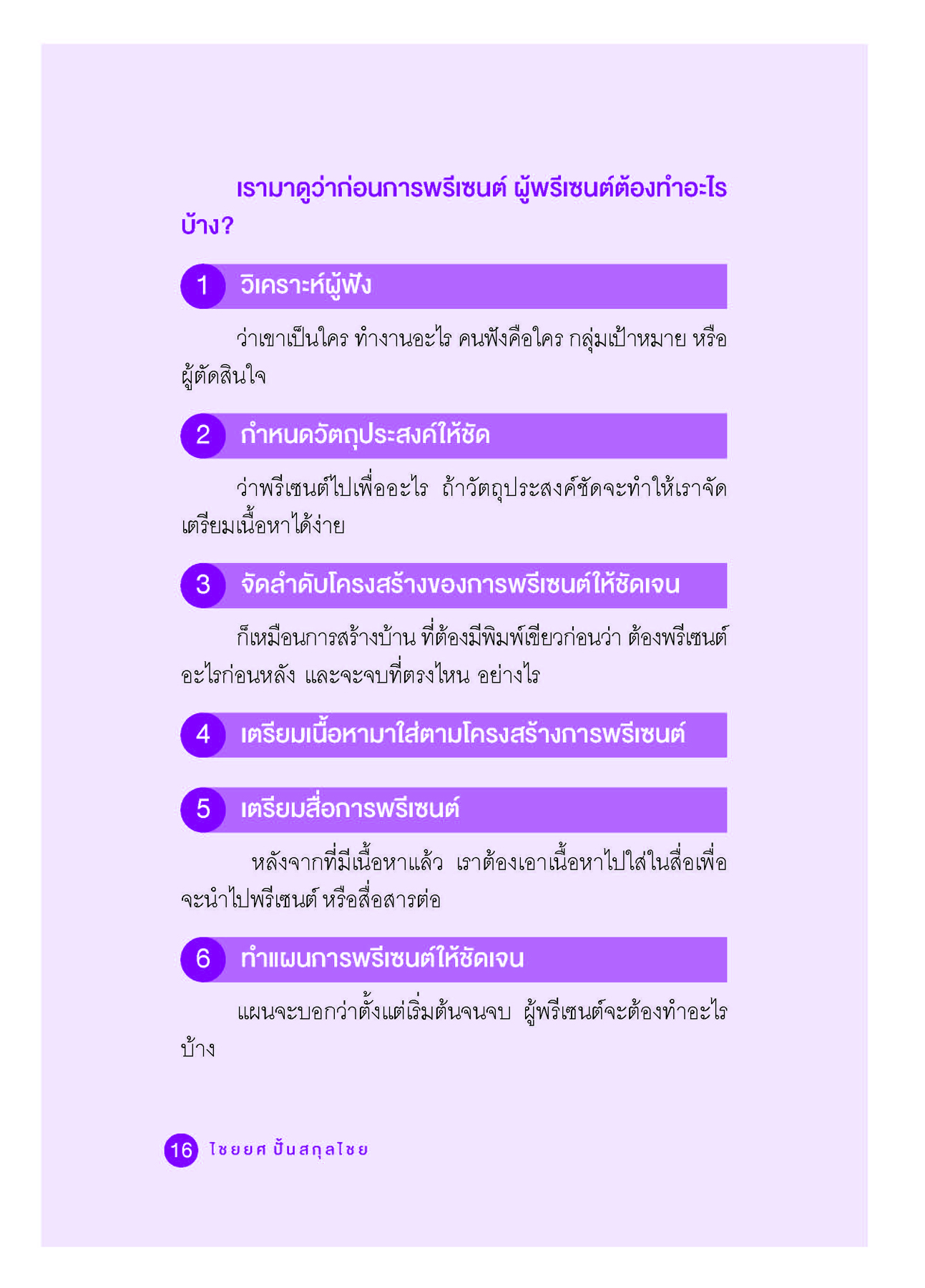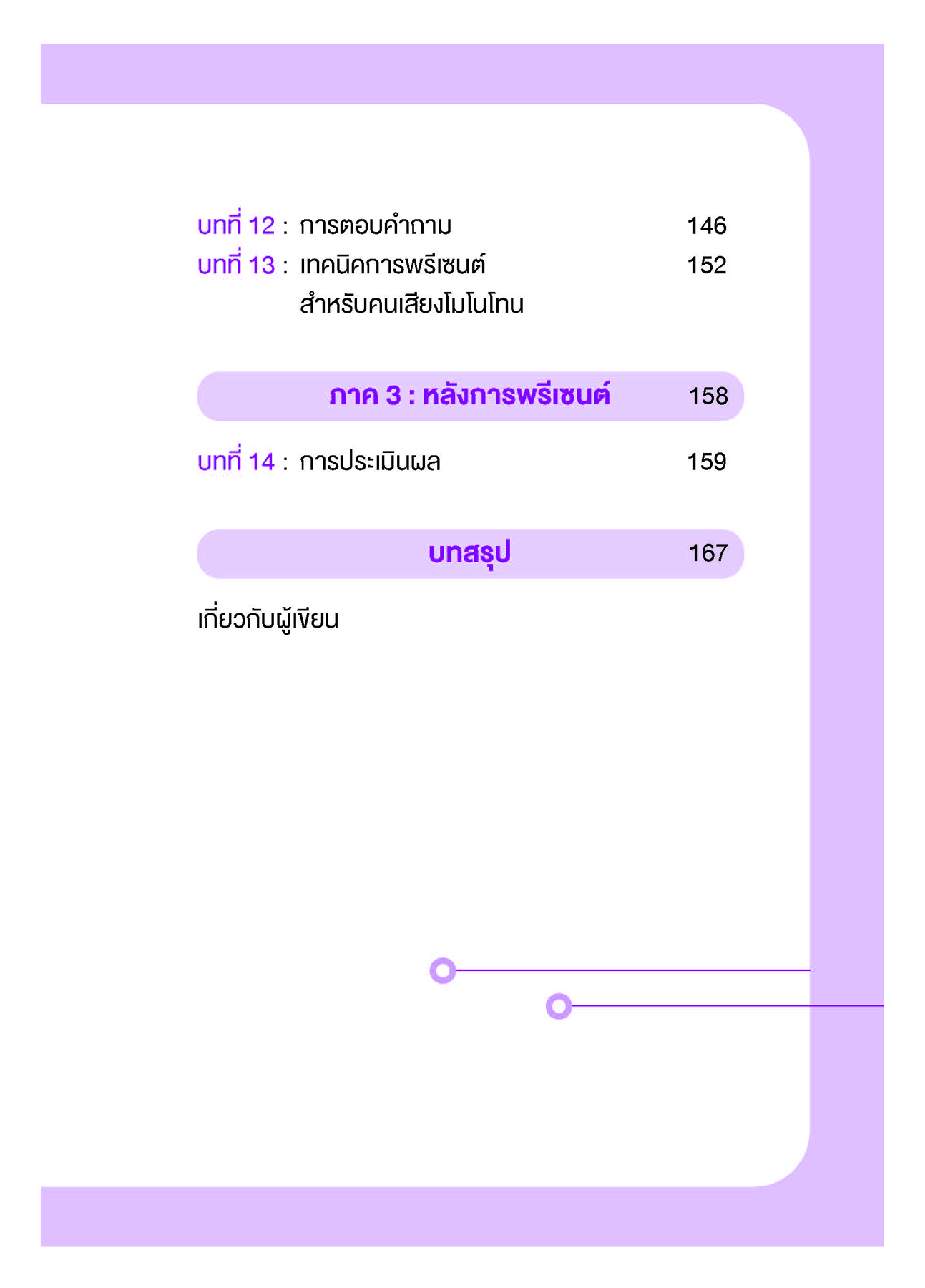 ฉะนั้นถ้าคุณอยากก้าวหน้าในอาชีพ หรือประสบความสำเร็จในธุรกิจ คุณจำเป็นอย่างยิ่งที่จะต้องฝึกทักษะด้านการนำเสนอให้มีความเฉียบคมและสามารถโน้มน้าวผู้ฟังให้เชื่อในสิ่งที่คุณพูด