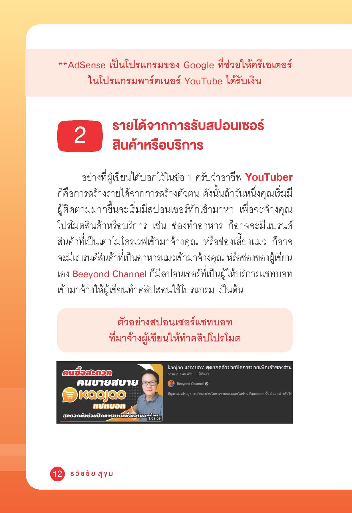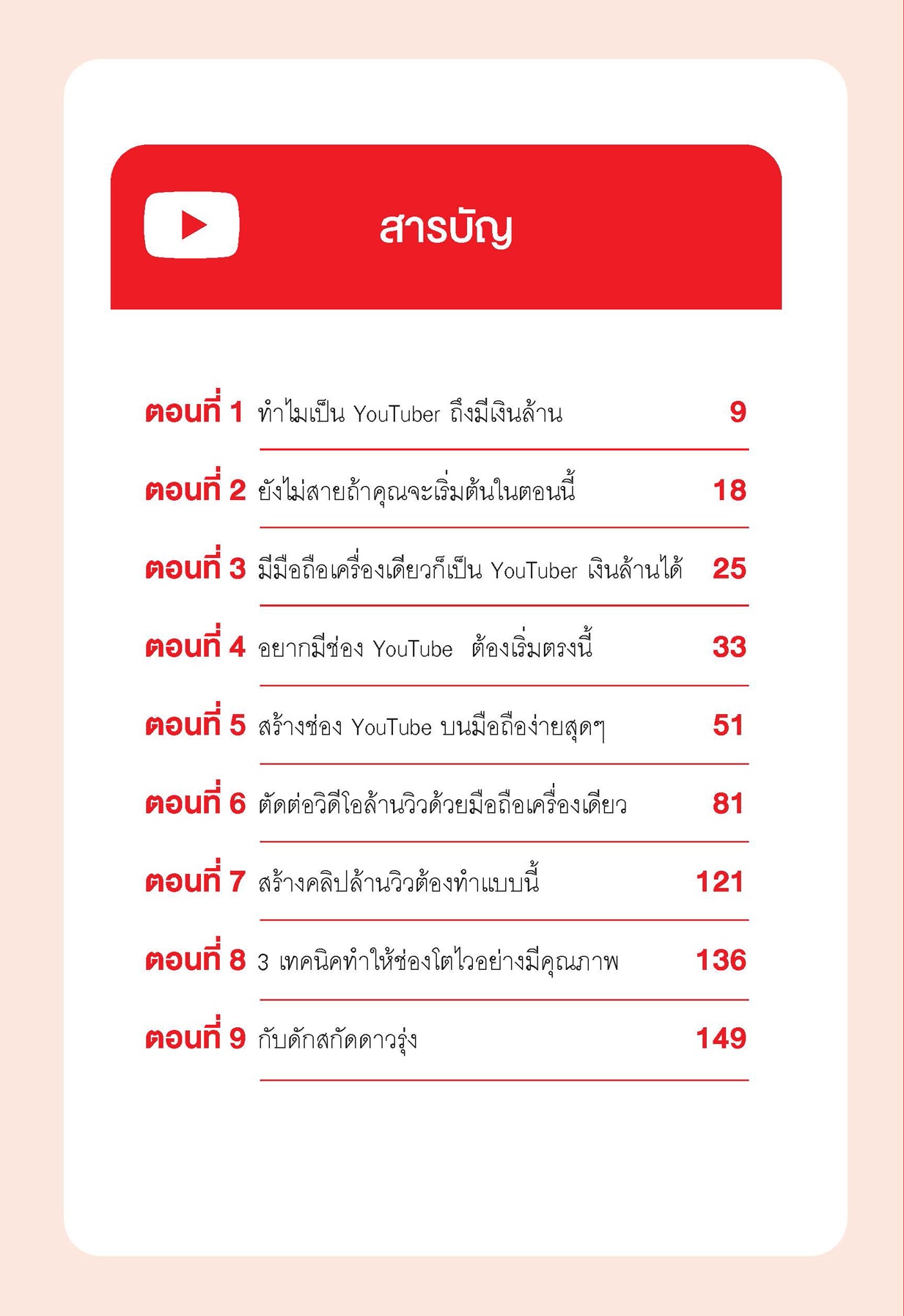 มีหนุ่มสาวรุ่นใหม่จำนวนไม่น้อยอยากเป็น YouTuber เพราะการเป็น YouTube จะทำให้เขาได้ทำในสิ่งที่เขารักและถนัด โดยไม่ต้องไปสมัครงานเพื่อไปเป็นพนักงานรับประทานเงินเดือน ไม่ต้องมีเจ้านาย ไม่มีใครมาออกคำสั่ง อีกทั้งยังมีเวลามากมายที่จะทำหลายสิ่งหลายอย่าง ที่สำคัญยังมีรายได้ไม่จำกัดขึ้นอยู่กับการสร้างContent ในแต่ละคลิปและจะยิ่งดีมากขึ้นถ้าคุณ YouTuber เงินล้านโดยใช้มือถือเครื่องเดียว เพียงแค่คุณอ่านหนังสือเล่มนี้แล้วนำไปปรับใช้ในการทำช่อง YouTube หรือพัฒนาการทำคลิปให้โดนใจผู้ชมให้มากขึ้น คุณก็อาจจะเป็นอีกหนึ่ง YouTuber ที่มีรายได้หลักแสนหลักล้าน ![]() ![]() ![]() ![]() ![]() ![]() ![]() ![]() ![]() ![]() ![]() ![]() ![]() ![]() ![]() ![]() |