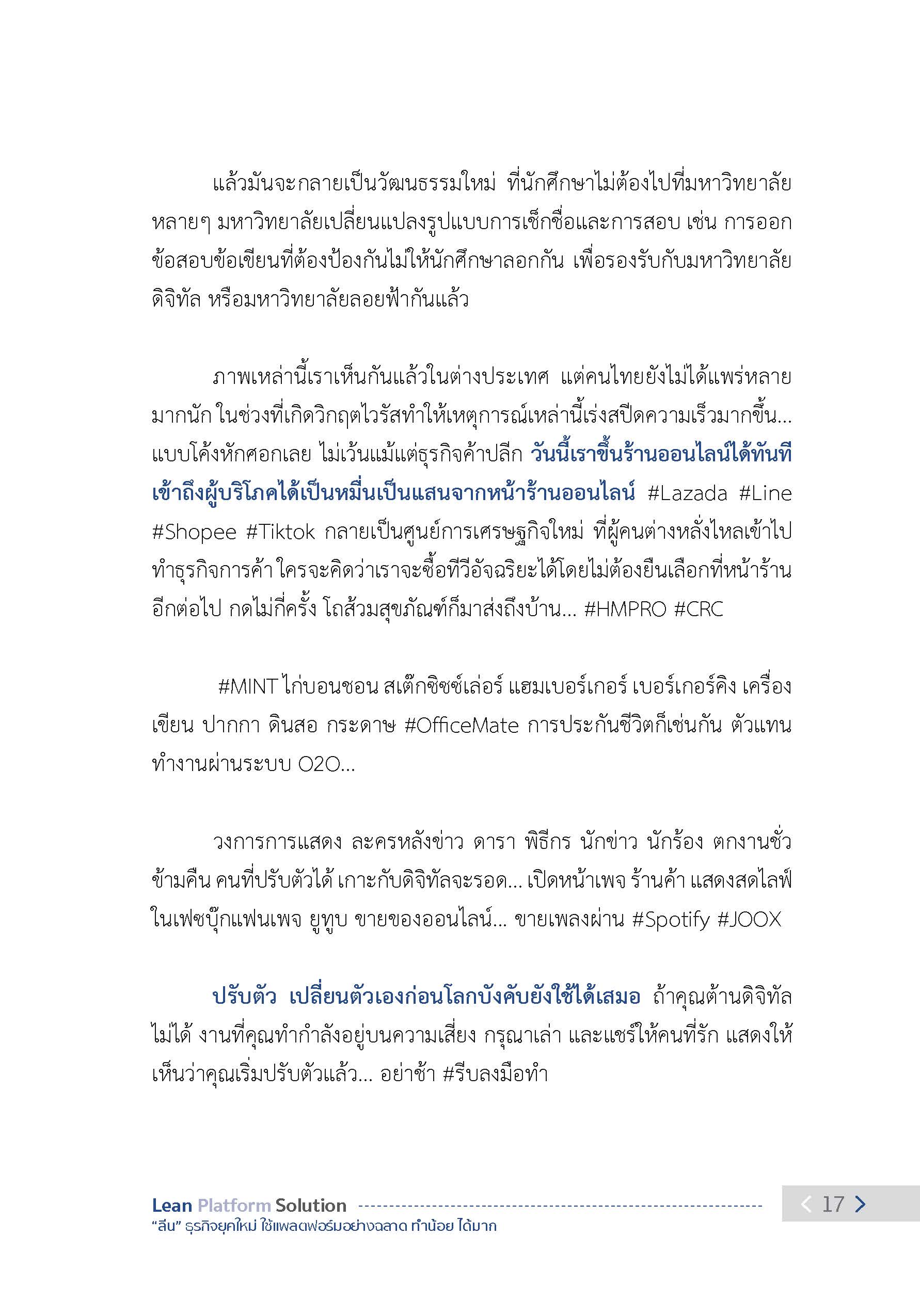 Platform กำลังกลืนกินโลกใบนี้ ไม่ว่าจะเป็นระบบอัตโนมัติ ซอฟต์แวร์แอป ระบบสารสนเทศ กลายเป็นธุรกิจที่ขายข้อมูล นวัตกรรม และเทคโนโลยีเป็นผู้นำตลาด สินค้าใหม่ๆ เกิดขึ้นได้ทุกที่ในทุกมุมโลก