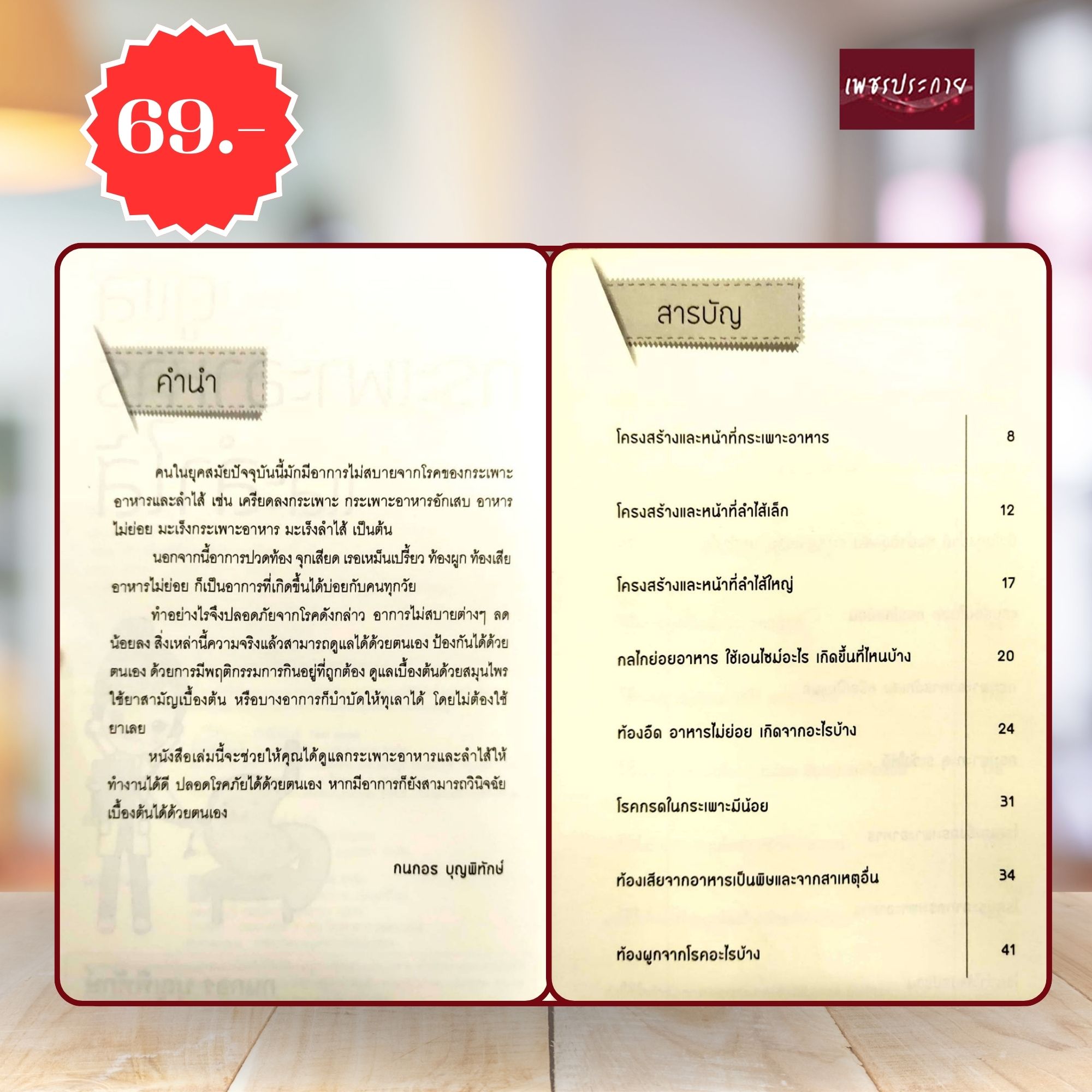 คนในยุคสมัยปัจจุบันมักมีอาการไม่สบายจากโรคของกระเพาะ อาหารและลำไส้ เช่น เครียดลงกระเพาะ กระเพาะอาหารอักเสบ อาหารไม่ย่อย มะเร็งกระเพาะอาหาร มะเร็งลำไส้ นอกจากนี้อาการปวดท้อง จุกเสียด เรอเหม็นเปรี้ยว ท้องผูก ท้องเสีย อาหารไม่ย่อย ก็เป็นอาการที่เกิดขึ้นได้บ่อยกับคนทุกวัย ทำอย่างไรจึงปลอดภัยจากโรคดังกล่าว อาการไม่สบายต่าง ๆ น้อยลง สิ่งเหล่านี้ความจริงแล้วสามารถดูแลได้ด้วยตนเอง ป้องกันได้ด้วยตนเอง ด้วยการมีพฤติกรรมการกินอยู่ที่ถูกต้อง ดูแลเบื้องต้นด้วยสมุนไพรใช้ยาสามัญเบื้องต้น หรือบางอาการก็บำบัดให้ทุเลาได้ โดยไม่ต้องใช้ยาเลย หนังสือเล่มนี้จะช่วยให้คุณดูแลกระเพาะอาหารและลำไส้ให้ทำงานได้ดี และปลอดโรคภัยได้ด้วยตนเอง