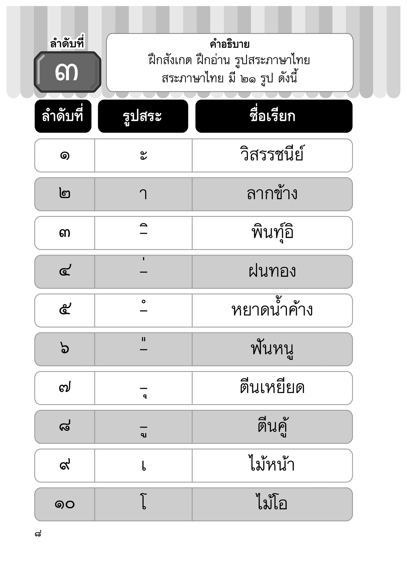 บทเรียนและแบบฝึกเสริมความรู้วิชาภาษาไทย สำหรับเด็กในวัยอนุบาลเพื่อเตรียมเข้า ป.๑