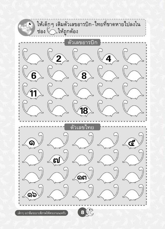 ให้เด็กๆ ได้ฝึกฝนและเรียนรู้เกี่ยวกับตัวเลข ทั้งเลขไทยและอารบิกไปจนถึงการเรียนรู้เรื่องการบวกลบอย่างง่าย เป็นหนังสือรวมกิจกรรมที่เหมาะสำหรับให้เด็กๆได้ใช้ในการเรียนรู้เพิ่มเติม ภายในเล่มประกอบด้วยภาพไดโนเสาร์น่ารักที่เด็กๆ ชื่นชอบ ![]() ![]() ![]() ![]() ![]() ![]() ![]() ![]() ![]() ![]() ![]() ![]() ![]() ![]() ![]() ![]() |