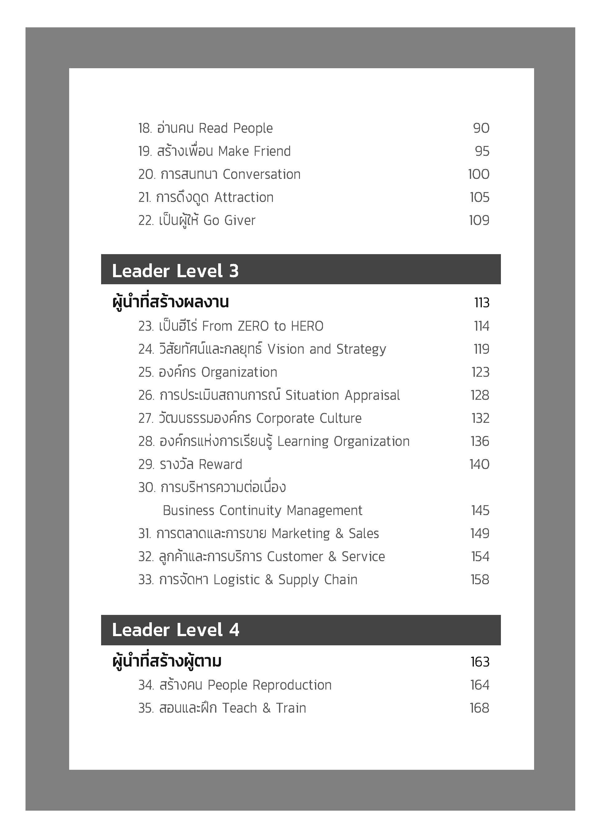 หนังสือเล่มนี้จะช่วยให้คุณเป็น ผู้นำตัวจริง ถ่ายทอดจากประสบการณ์ตรงของผู้เขียน อัดแน่นไปด้วยบทเรียนและแนวคิดที่จะช่วยให้คุณกลายเป็น "ผู้นำ" ที่อยู่เหนือการแข่งขัน เป็นผู้นำที่ไม่ใช่เพียงแค่ประสบความสำเร็จ แต่ยังช่วยเหลือให้ผู้อื่นประสบความสำเร็จได้ด้วย ![]() ![]() ![]() ![]() ![]() ![]() ![]() ![]() ![]() ![]() ![]() ![]() ![]() ![]() ![]() ![]() |