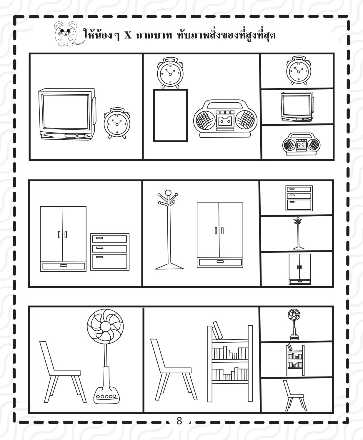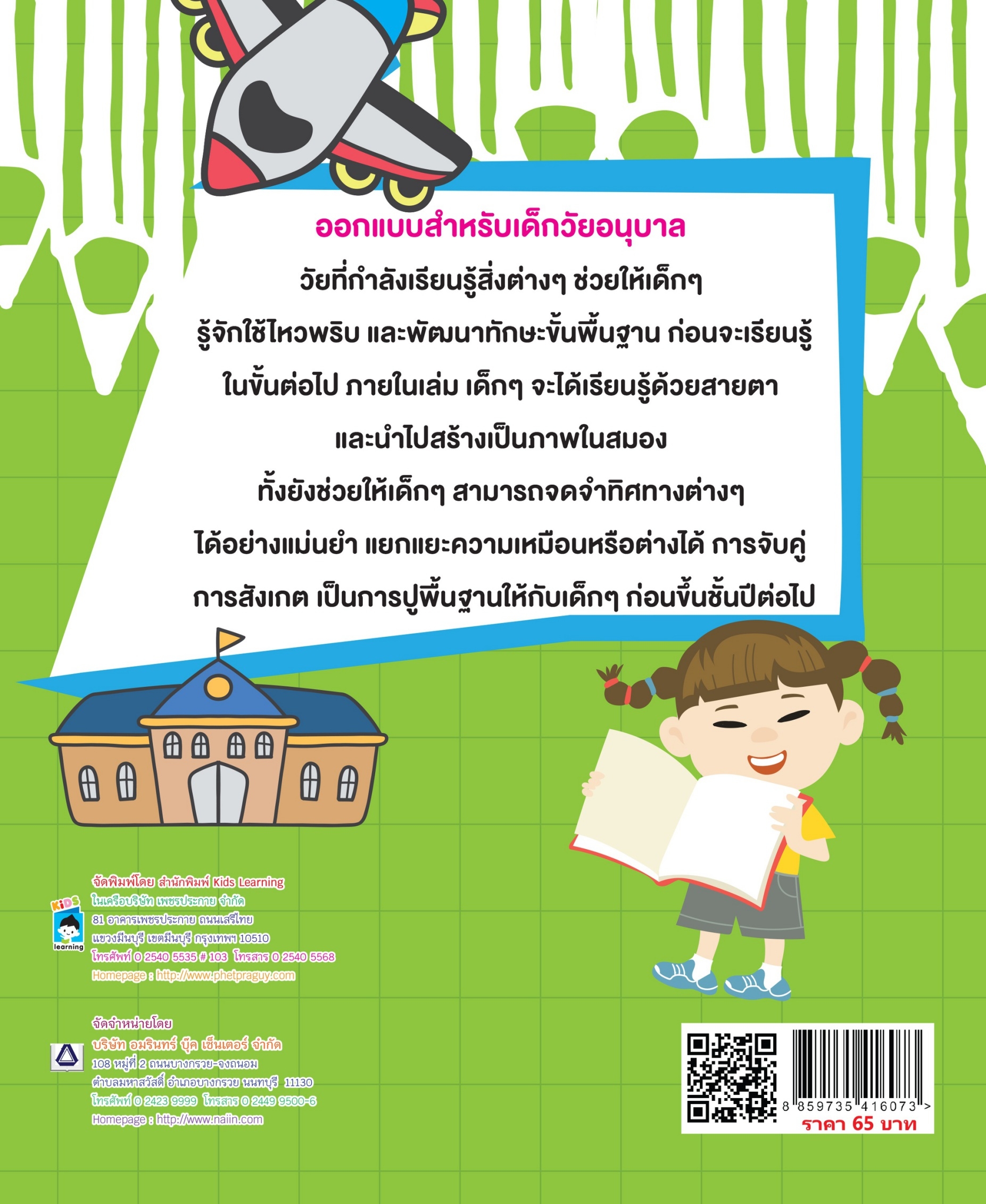 ออกแบบสำหรับเด็กวัยอนุบาล วัยที่กำลังเรียนรู้สิ่งต่างๆ ช่วยให้เด็กๆ รู้จักไหวพริบ และพัฒนาทักษะขั้นพื้นฐาน ก่อนจะเรียนรู้ในขั้นต่อไป ภายในเล่ม เด็กๆ จะได้เรียนรู้ด้วยสายตา และนำไปสร้างเป็นภาพในสมอง ทั้งยังช่วยให้เด็ก สามารถจดจำทิศทางต่างๆ ได้อย่างแม่นยำ แยกแยะความเหมือนหรือต่างได้ การจับคู่ การสังเกต เป็นการปูพื้นฐานให้กับเด็กๆ ก่อนขึ้นชั้นปีต่อไป ![]() ![]() ![]() ![]() ![]() ![]() ![]() ![]() ![]() ![]() ![]() ![]() ![]() ![]() ![]() ![]() |