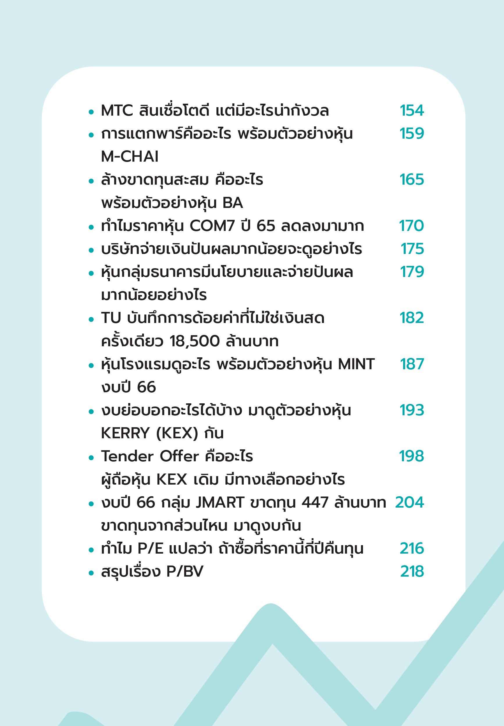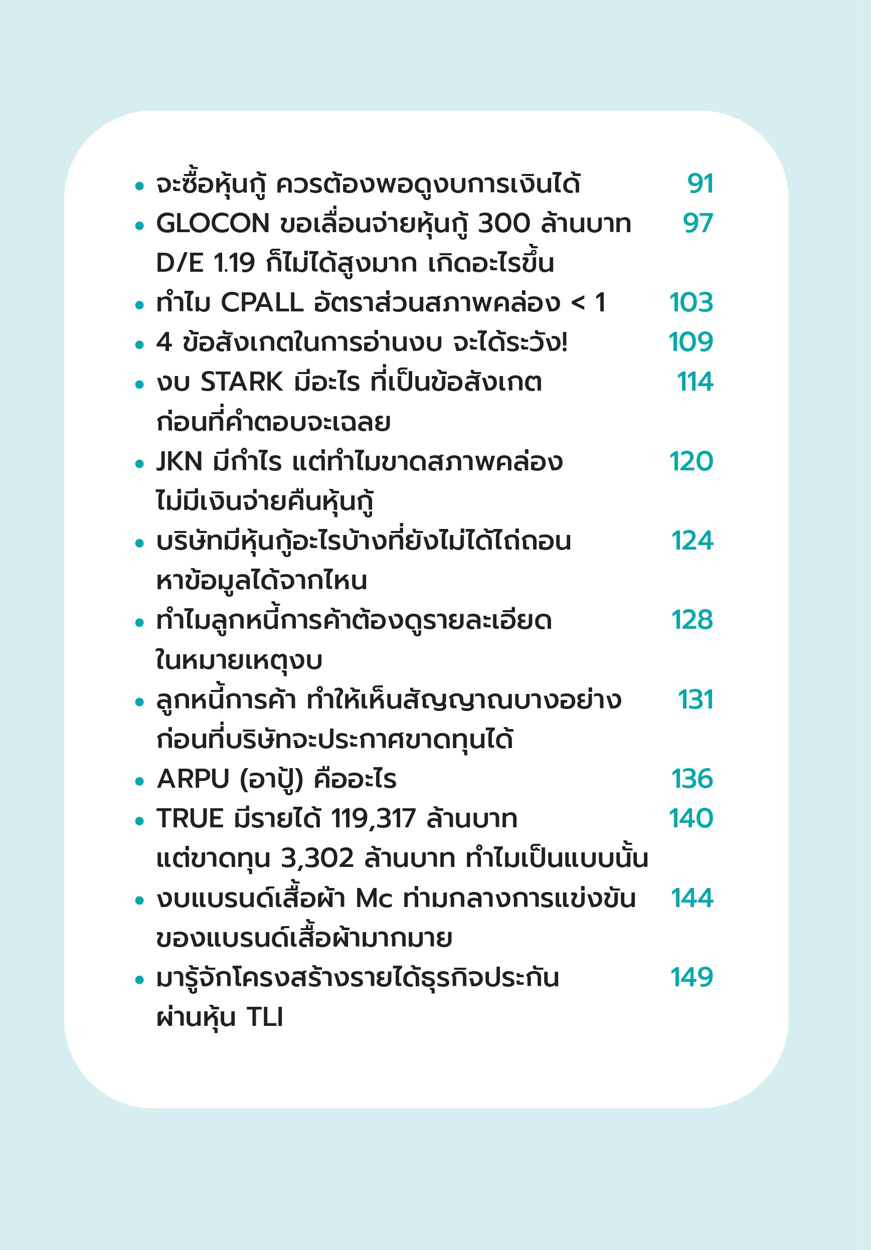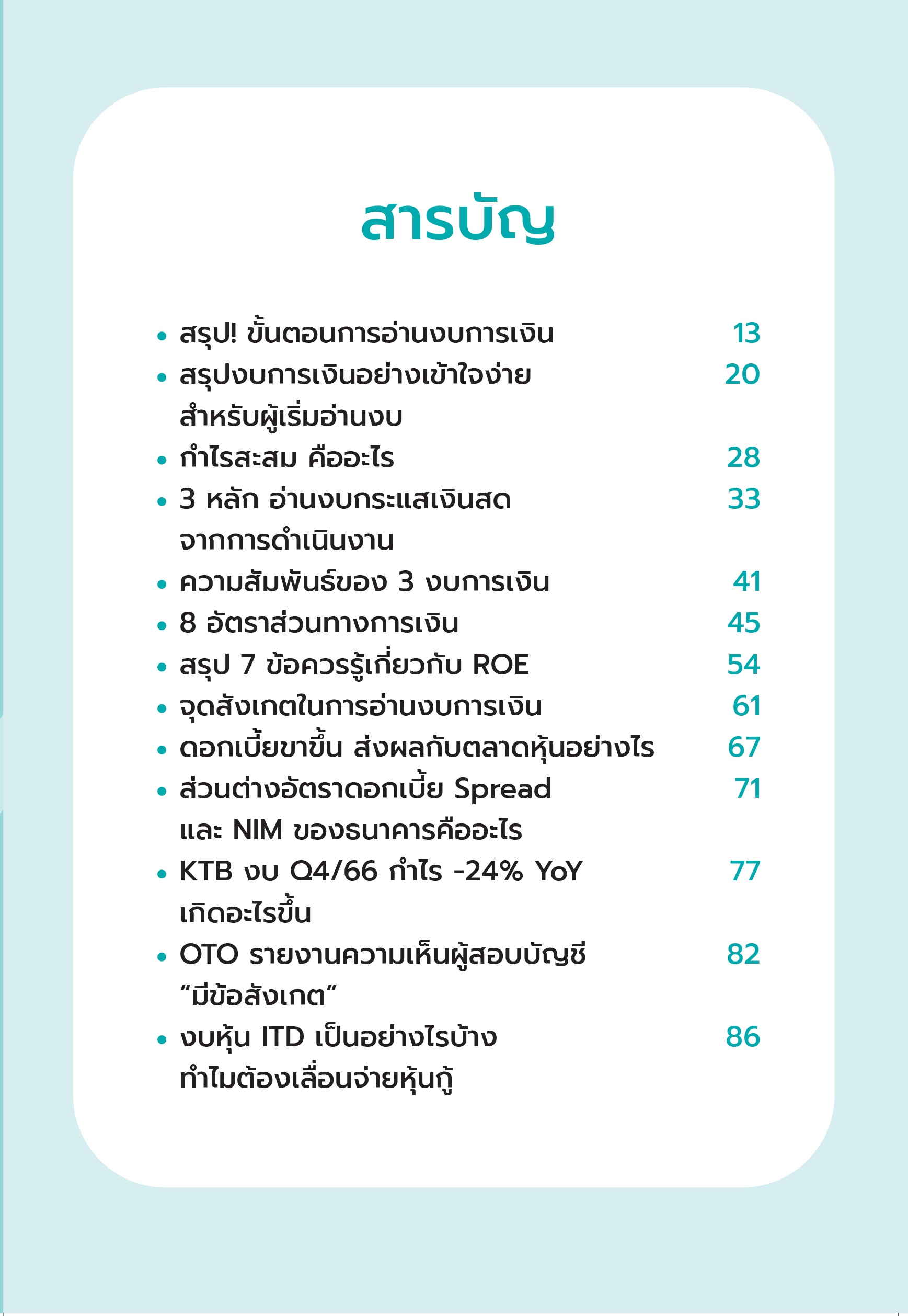 หนังสือเล่มนี้ไม่ใช่เพียงการวิเคราะห์ตัวเลขเท่านั้น แต่ยังช่วยให้คุณได้มองเห็นภาพรวมของธุรกิจที่ซ่อนอยู่ในตัวเลขทางการเงิน ด้วยการอธิบายอย่างชัดเจนและตัวอย่างจริงจากตลาดหุ้นกว่าสิบบริษัท หนังสือเล่มนี้จะพาคุณผ่านเส้นทางการเข้าใจงบการเงินอย่างเป็นระบบ ไม่ว่าคุณจะเป็นผู้เริ่มต้นก็สามารถนำไปใช้ได้ในการตัดสินใจการลงทุนอย่างมั่นใจได้เอง! พร้อมเคล็ดลับการวิเคราะห์ที่ชัดเจนและเป็นประโยชน์ เพื่อให้คุณสามารถใช้งบการเงินเป็นเครื่องมือสำคัญในการตัดสินใจการลงทุนในอนาคตได้อย่างมั่นใจ และสร้างความเข้าใจงบการเงินที่เปิดโอกาสให้คุณเข้าใจภาพรวมของธุรกิจได้เพิ่มขึ้น ![]() ![]() ![]() ![]() ![]() ![]() ![]() ![]() ![]() ![]() ![]() ![]() ![]() ![]() ![]() ![]() |
