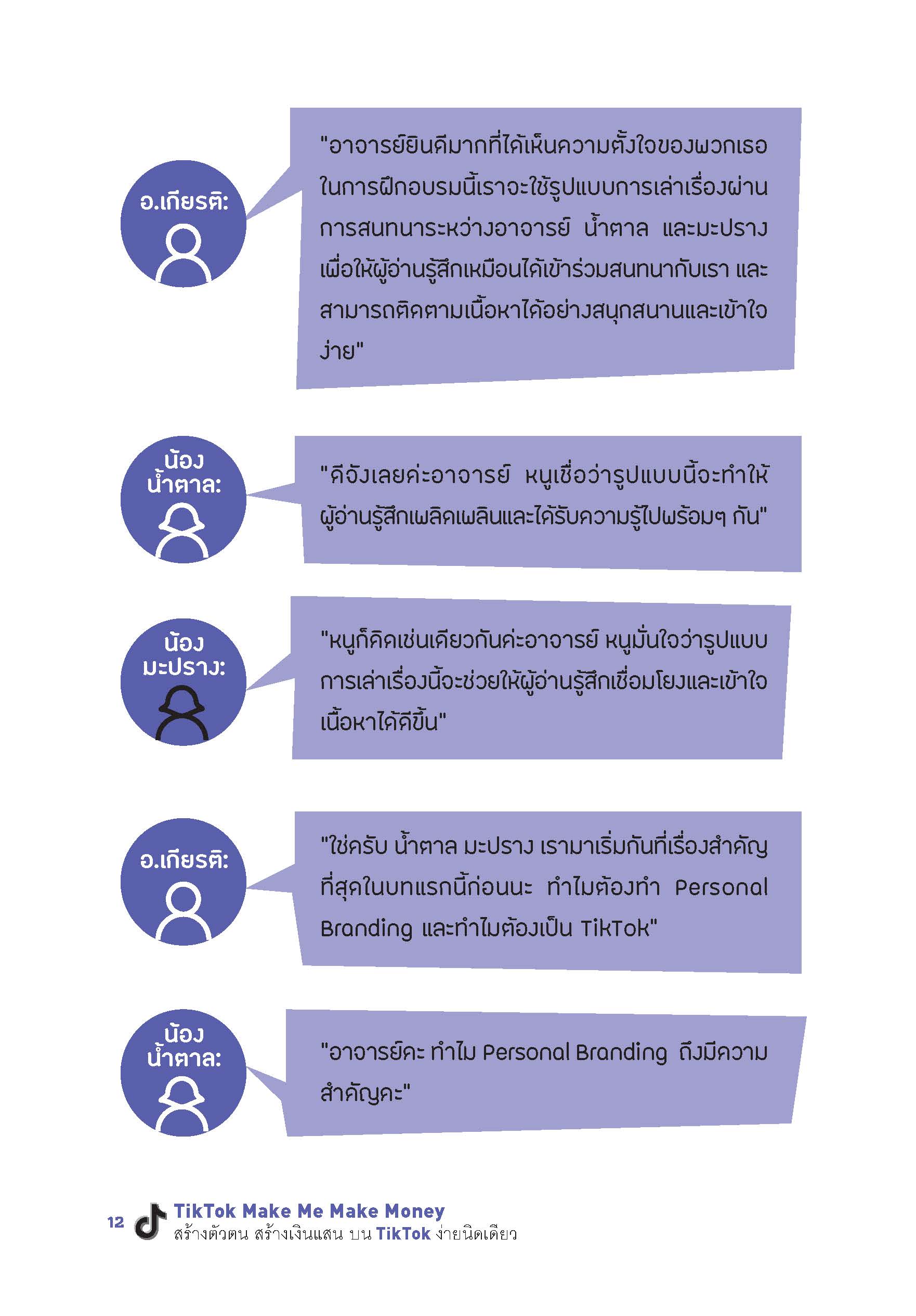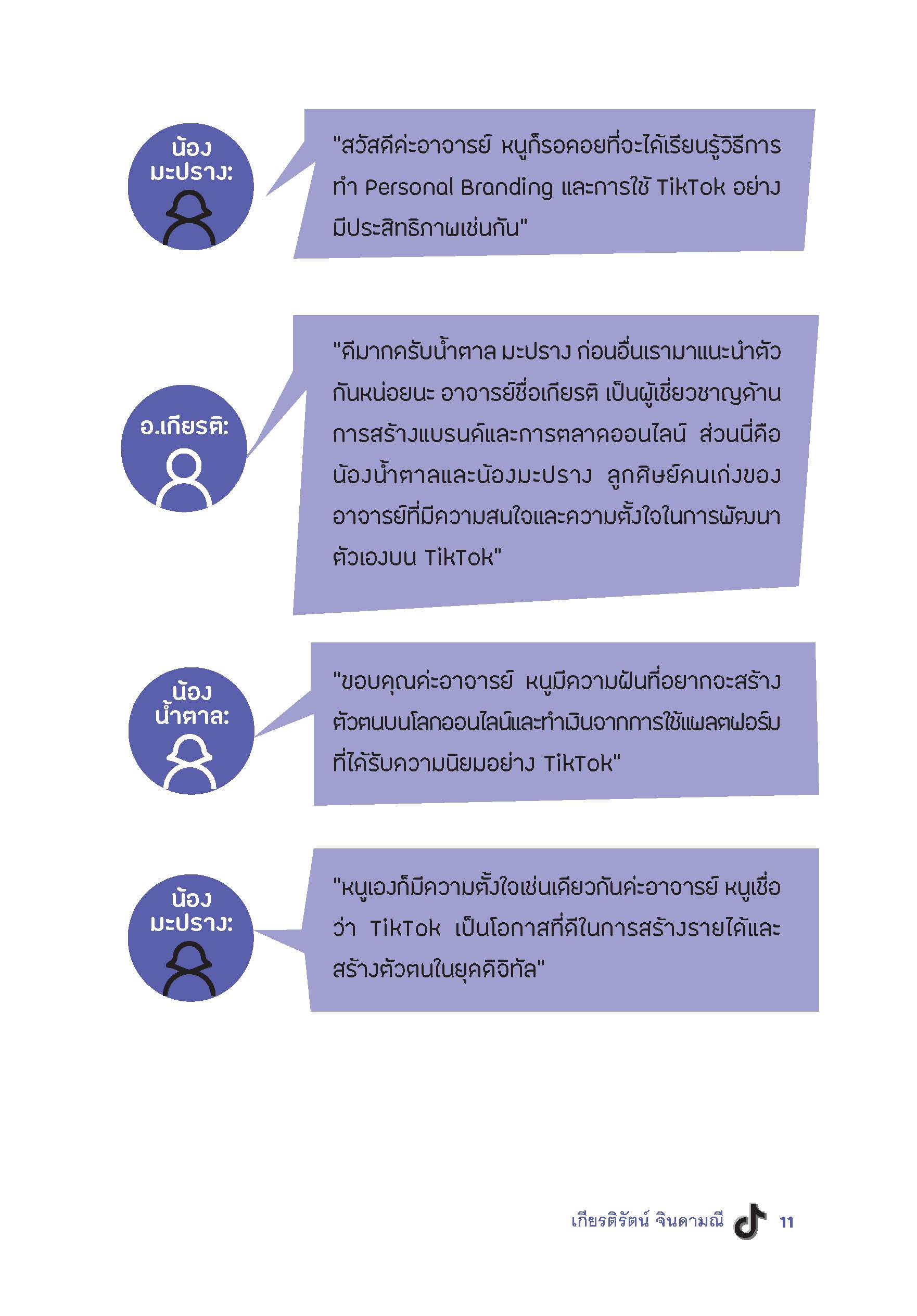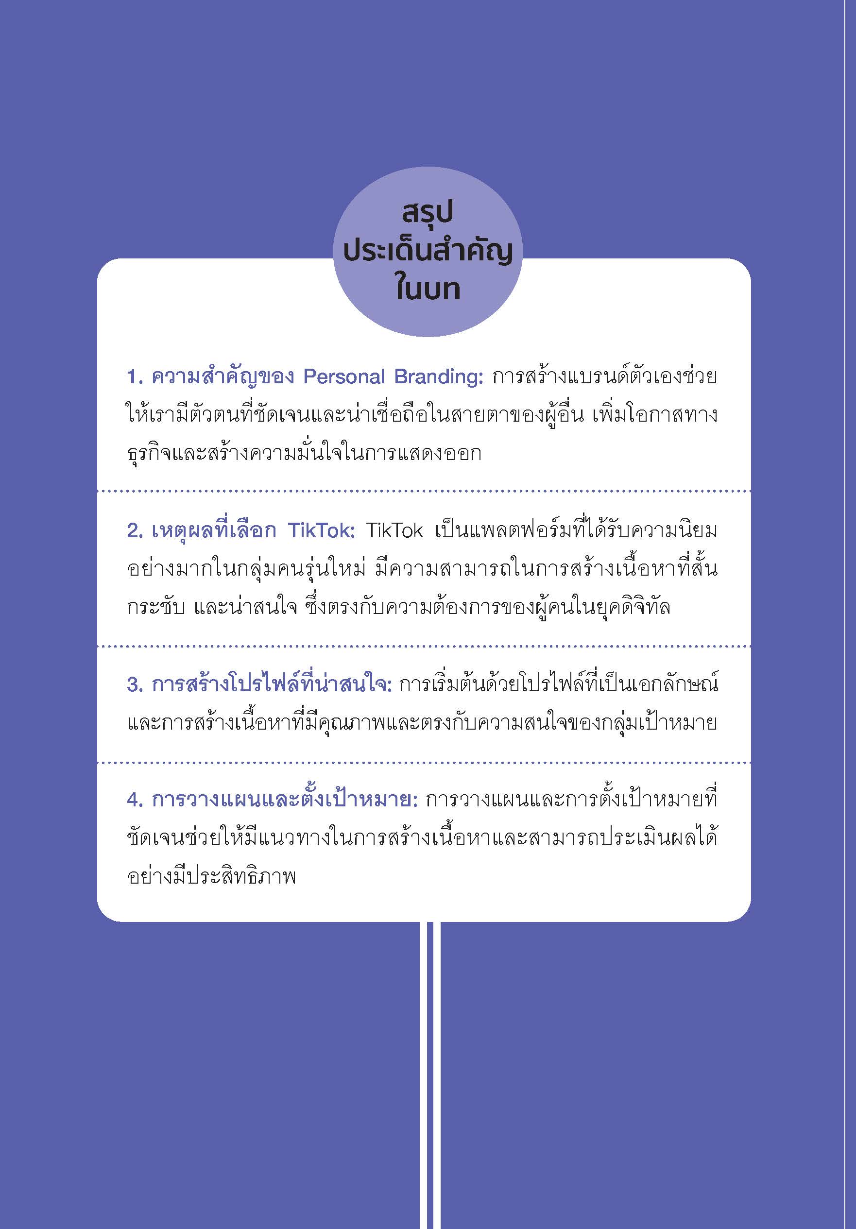 หนังสือเล่มนี้ ถูกออกแบบมาให้เข้าถึงง่าย ไม่ว่าคุณจะมีพื้นฐานแค่ไหน คุณจะพบว่าการนำเทคนิคและเคล็ดลับที่อยู่ในหนังสือไปใช้ใช้ในการสร้างคอนเทนต์บน TikTok เป็นเรื่องที่ง่ายและได้ผล ในแต่ละบทมีแบบฝึกหัดที่ออกแบบมาเพื่อให้คุณได้ลองทำและประประยุกต์ใช้ความรู้ที่ใด้รับ เพื่อให้คุณสามารถพัฒนาทักษะและสร้างเนื้อหาที่มีคุณภาพได้อย่างแท้จริง