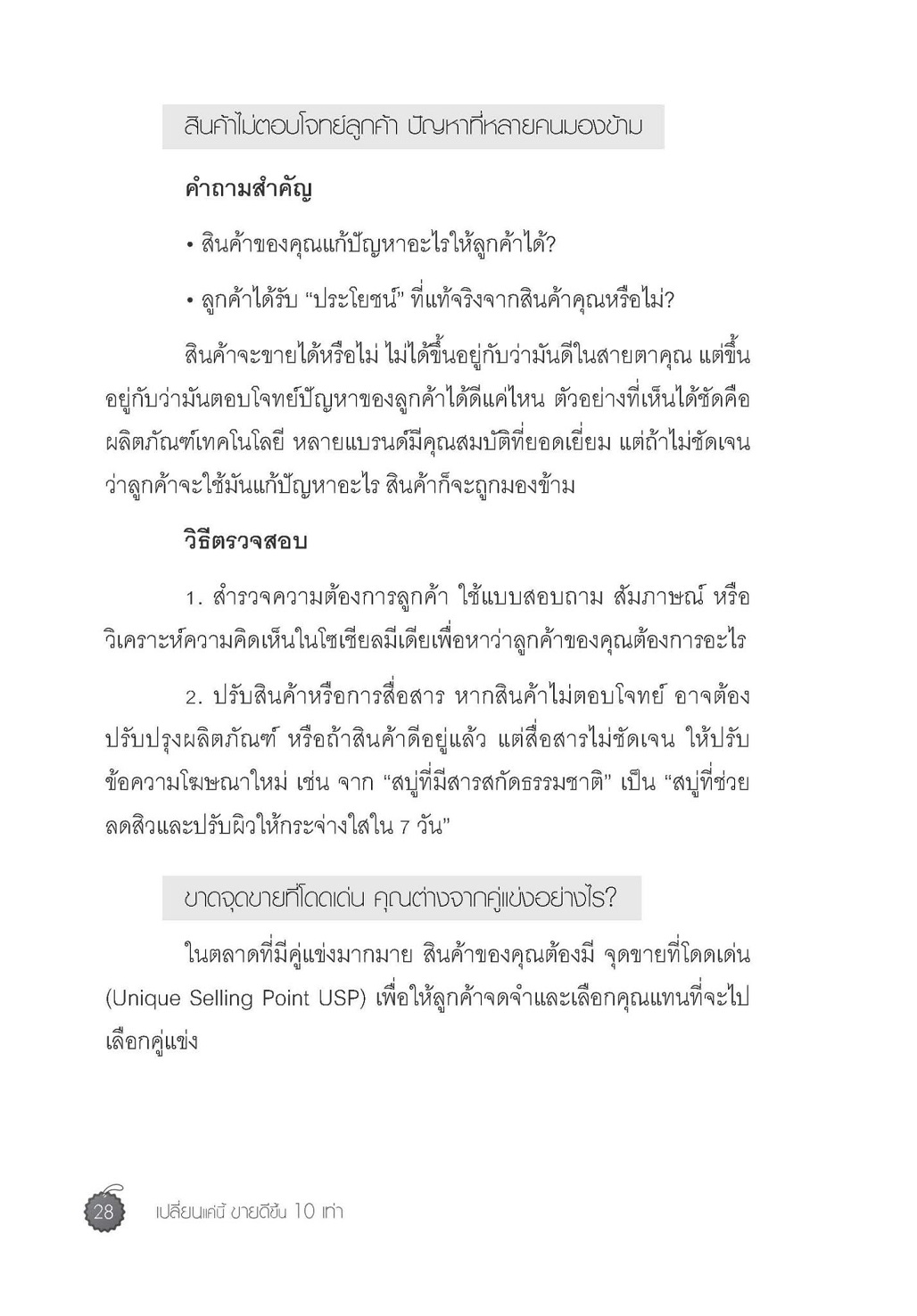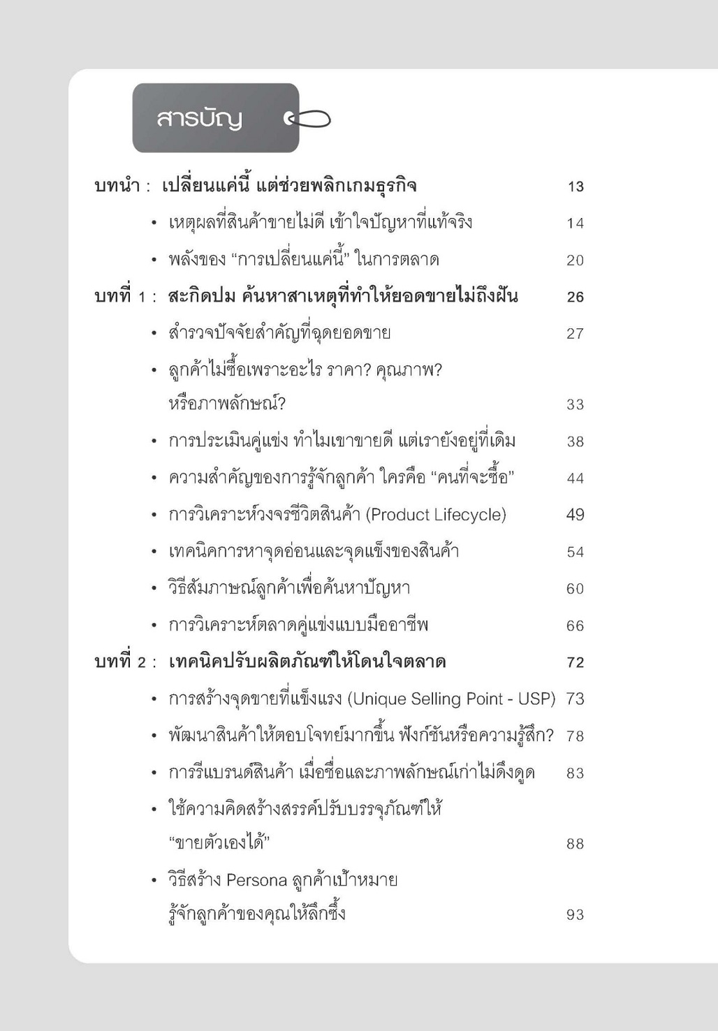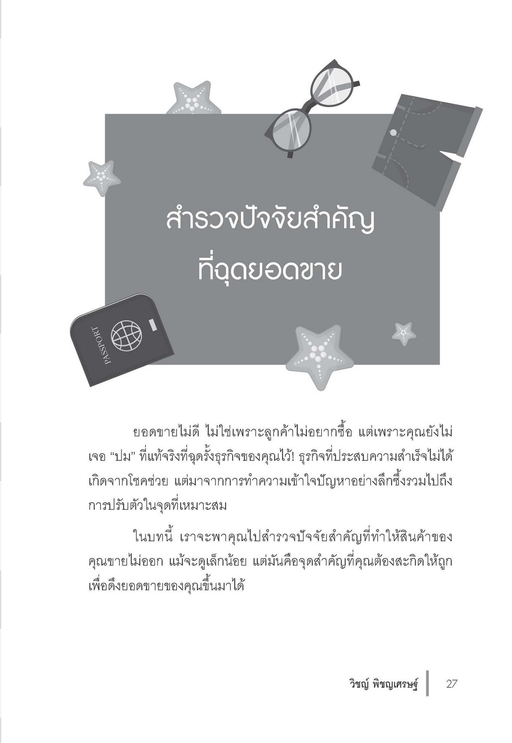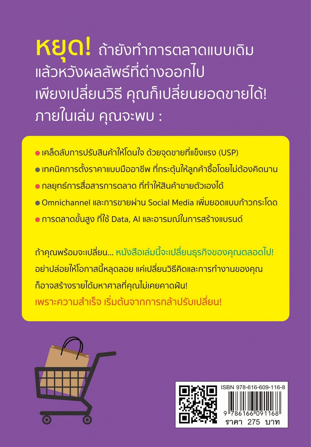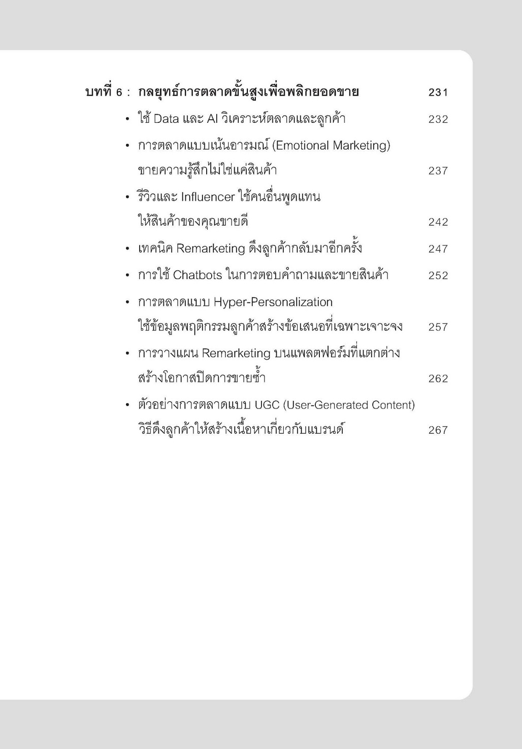 หนังสือเล่มนี้จะช่วยผู้อ่านในการสำรวจธุรกิจของตนเองอย่างลึกซึ้ง ตั้งแต่การวิเคราะห์ปัญหาที่แท้จริงของยอดขาย การเข้าใจลูกค้า การพัฒนาสินค้าให้ตอบโจทย์ตลาด ไปจนถึบงการวางกลยุทธ์การตลาดที่แม่นยำ ไม่ว่าจะเป็นการตั้งราคาที่เหมาะสม การสื่อสารกับกลุ่มเป้าหมายอย่างมีประสิทธิภาพ หรือการใช้เทคโนโลยีขั้นสูง เช่น AI และ Data Analytics เพื่อขับเคลื่อนธุรกิจ ![]() ![]() ![]() ![]() ![]() ![]() ![]() ![]() ![]() ![]() ![]() ![]() ![]() ![]() ![]() ![]() |