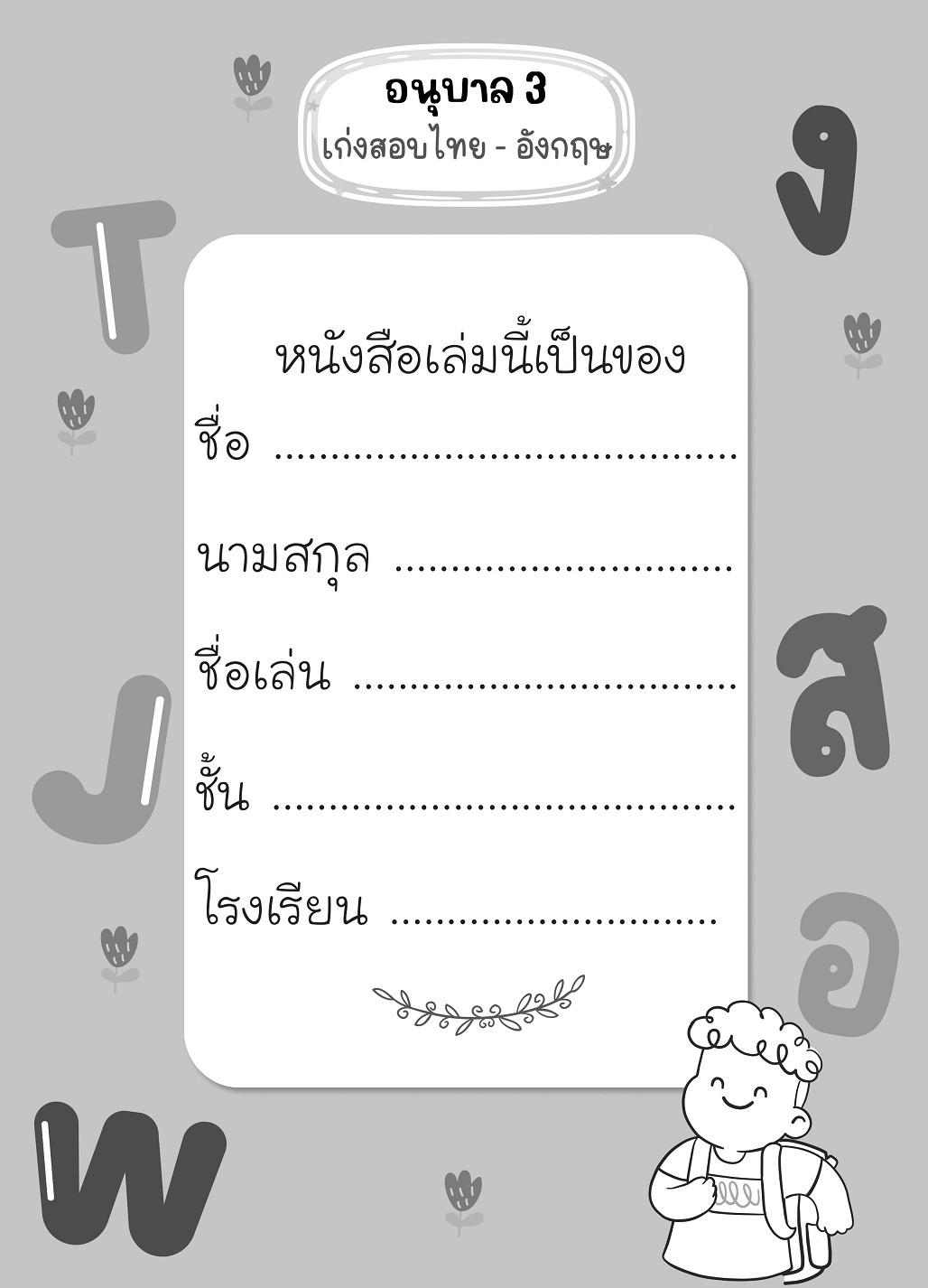 กิจกรรมที่ช่วยเสริมทักษะภาษาไทย และภาษาอังกฤษ สำหรับน้องๆ ระดับชั้นอนุบาล 3 ปูพื้นฐานทางด้านภาษาไทย และภาษาอังกฤษ สำหรับน้อง ๆ ระดับชั้นอนุบาล 3เพื่อให้เรียนดี สอบได้ รู้คำศัพท์มากมาย จากกิจกรรมต่างๆ เช่น คัดตัวอักษร โยงเส้นจับคู่ ระบายสี ฯลฯ ![]() ![]() ![]() ![]() ![]() ![]() ![]() ![]() ![]() ![]() ![]() ![]() ![]() ![]() ![]() ![]() |