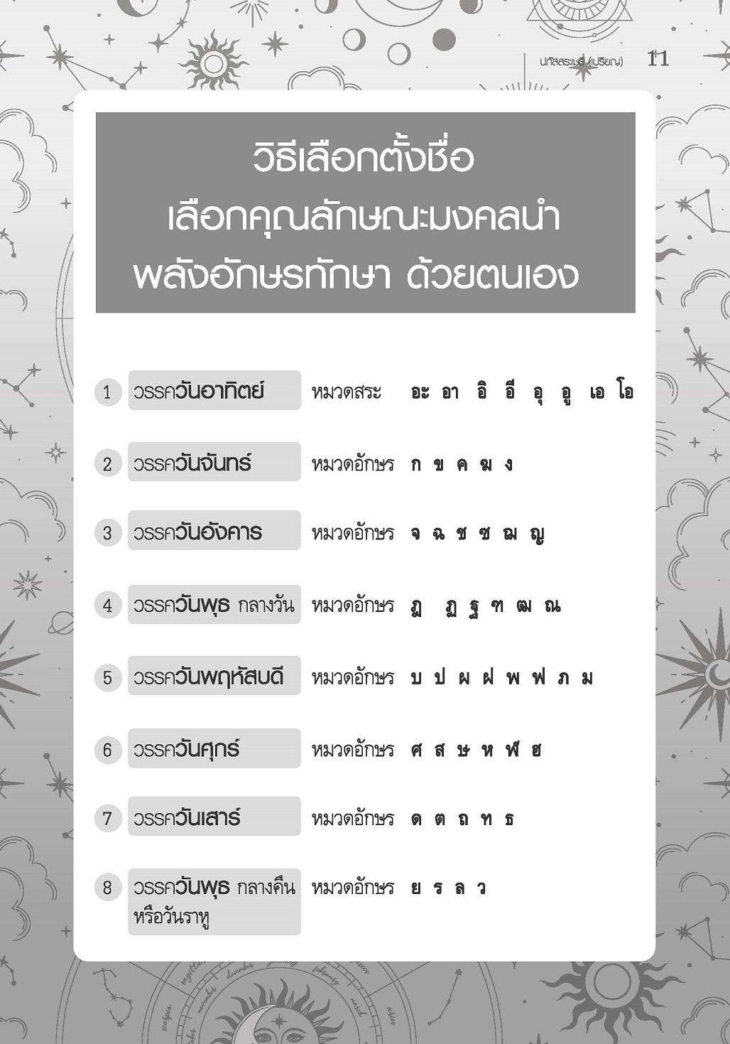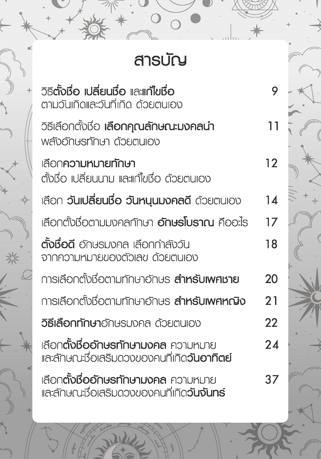 คล็ดลับการตั้งชื่อ-เปลี่ยนชื่อที่ดีเป็นสิริมงคล อาทิ *วิธีตั้งชื่อ เปลี่ยนชื่อ และแก้ไขชื่อตามวันเกิดและวันที่เกิด ด้วยตนเอง *วิธีเลือกตั้งชื่อเลือกคุณลักษณะมงคลนำพลังอักษรทักษา *เลื่อกความหมายทักษา ตั้งชื่อ เปลี่ยนนาม และแก้ไขชื่อ *เลือกวันเปลี่ยนชื่อ วันหนุนมงคลดี ด้วยตัวเอง *เลือกตั้งชื่อตามมงคลทักษา อักษรโบรษร คืออะไร *ตั้งชื่อเด็ก อักษรมงคล เลือกกำลังวันจากความหมายของตัวเลข พร้อมด้วยชื่อที่คัดสรรตามอักษรมงคลตามหมวดอักษรอีกว่า 5,000 ชื่อ ![]() ![]() ![]() ![]() ![]() ![]() ![]() ![]() ![]() ![]() ![]() ![]() ![]() ![]() ![]() ![]() |