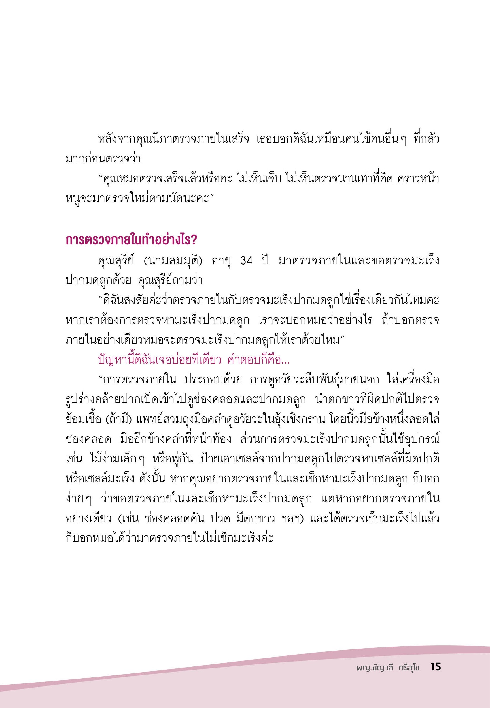 เรื่องเกี่ยวกับสุขภาพภายในของผู้ชายหรือของผู้หญิง เป็นภัยเงียบที่ร้ายแรงหากเราไม่ได้รับการรักษาให้ทันท่วงที เรื่องที่มันเล็กๆ อาจจะเป็นเรื่องใหญ่ที่สายเกินแก้ หนังสือเรื่อง ตรวจภายในชาย-หญิง Male and Female Genital Examination เล่มนี้ จะบอกถึง อาการ สาเหตุ และแนวทางการแก้ไขเบื้องต้น หากใครที่เป็นหรือสงสัยว่าอาจจะเป็นเกี่ยวกับโรคต่างๆ ในหนังสือเล่มนี้ ก็สามารถดูแลตนเองเบื้องต้นได้ตามคำแนะนำของคุณหมอ หรือหากสงสัยว่าอาการที่เป็นอยู่อาจจะเป็นโรคที่กล่าวมาในหนังสือเล่มนี้ ก็ควรรีบไปพบหมอเพื่อได้รับการตรวจที่ถูกต้องค่ะ ตัวอย่างโรคที่ไม่ควรมองงข้าม เช่น “ถุงน้ำรังไข่” , “น้ำคล้ายเลือดไหลออกมาจากช่องคลอด” , “วัยทองกับมะเร็งเต้านม”, “แฟนติดโรคหูดหงอนไก่”, “ตุ่มใสๆ ที่ช่องคลอดเป็นอะไรได้บ้าง ![]() ![]() ![]() ![]() ![]() ![]() ![]() ![]() ![]() ![]() ![]() ![]() ![]() ![]() ![]() ![]() |