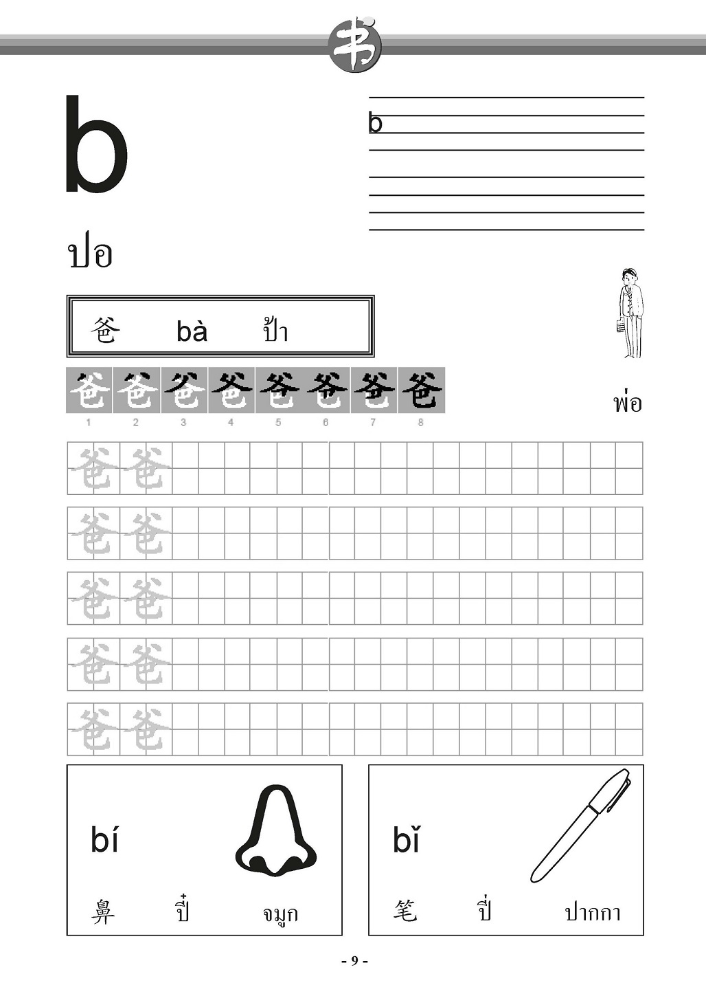 • ฝึกเขียนอักษรจีนที่ใช้กับพยัญชนะ