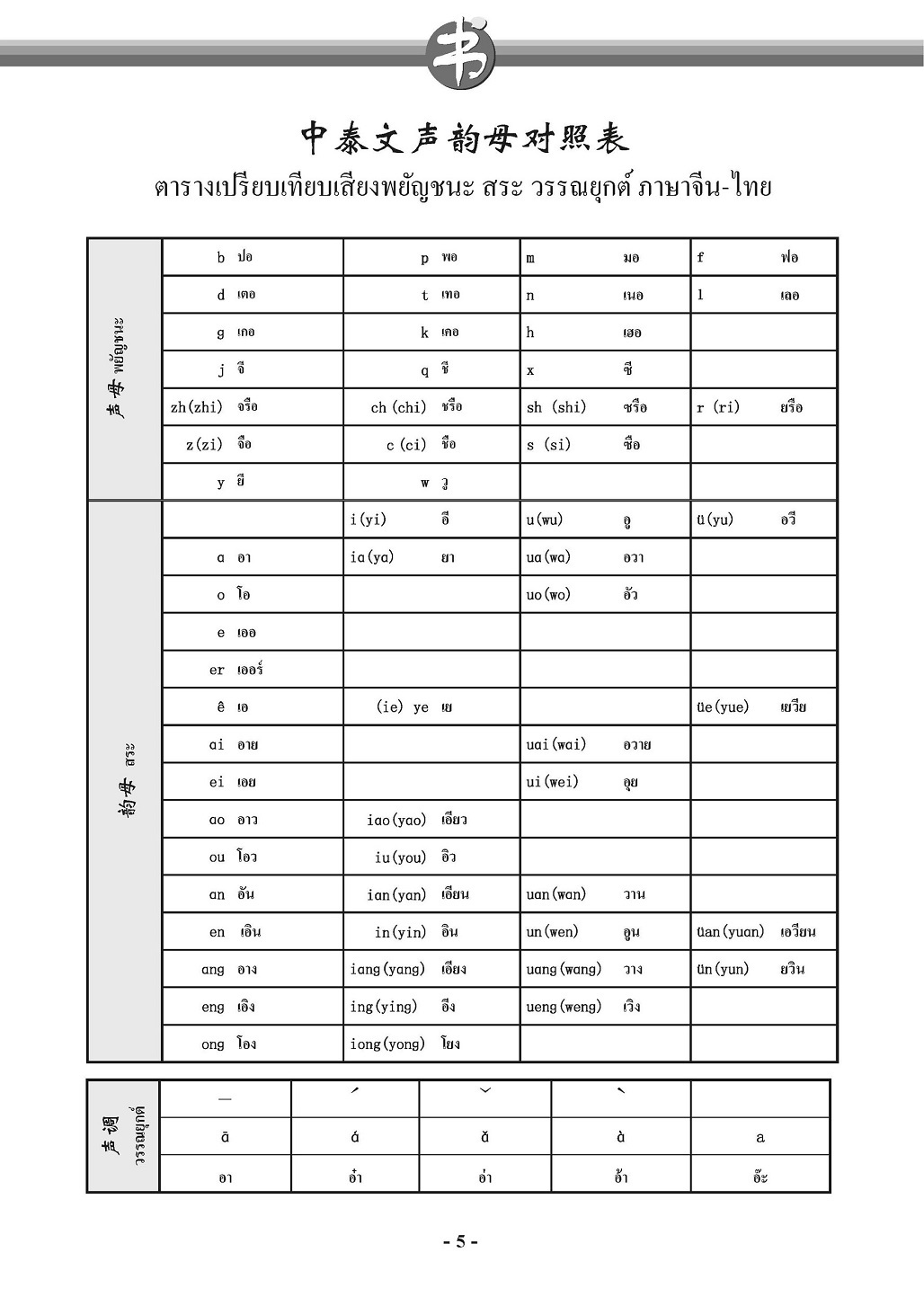 • ตารางเทียบพยัญชนะภาษาจีนเป็นภาษาไทย