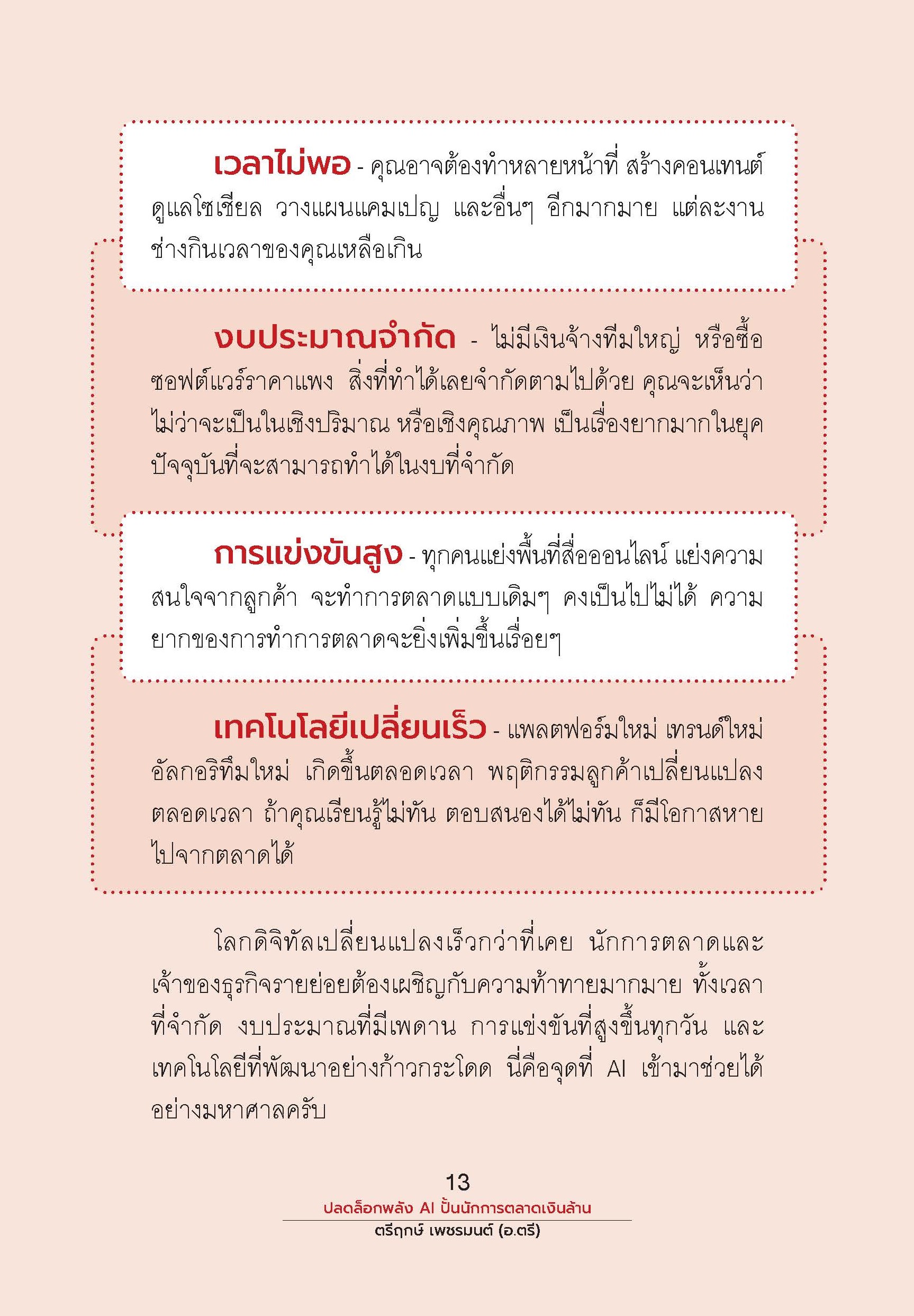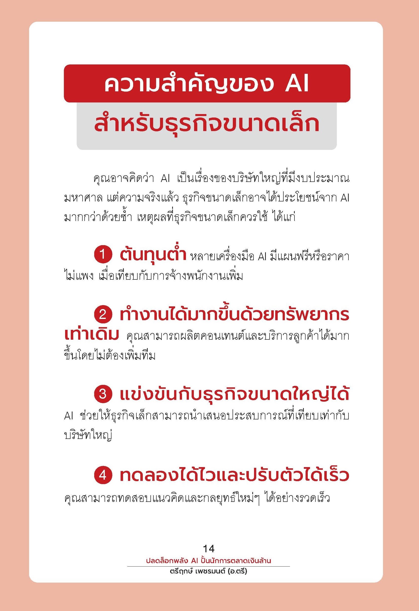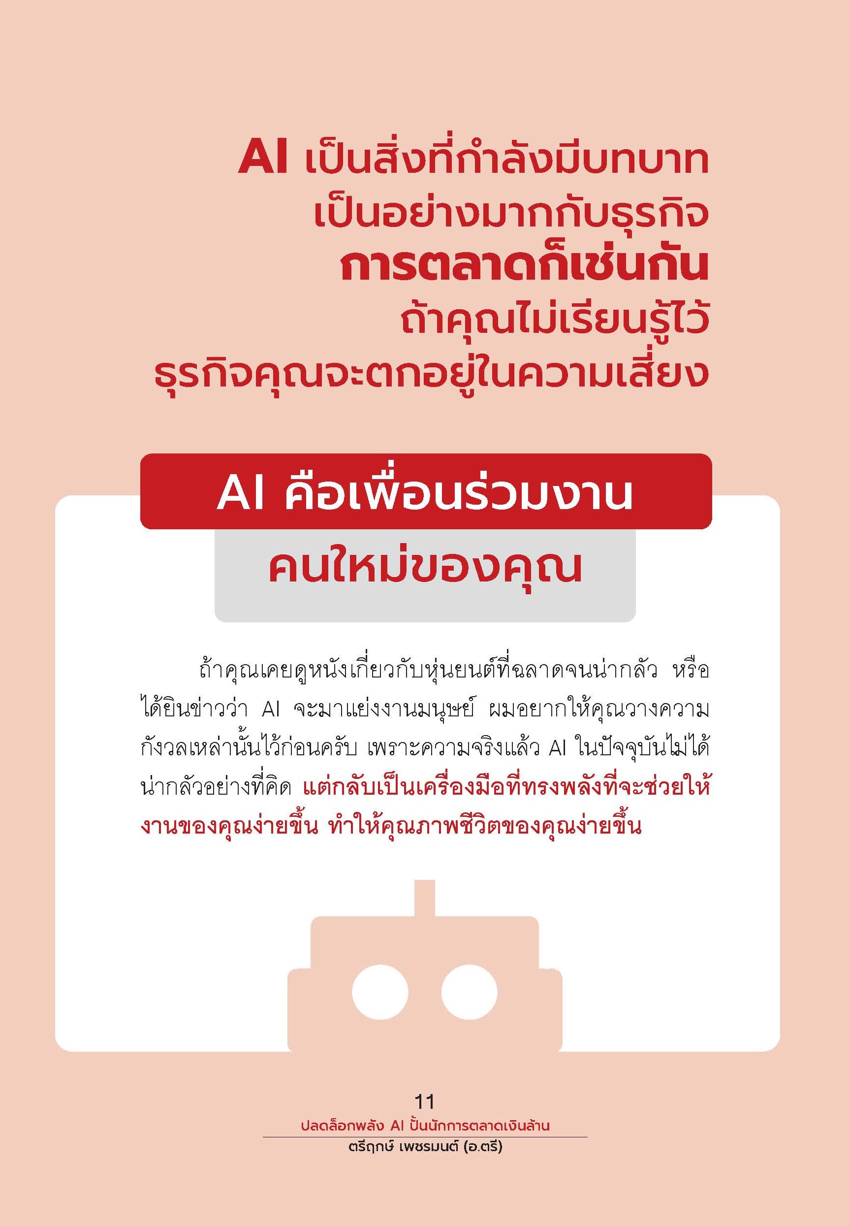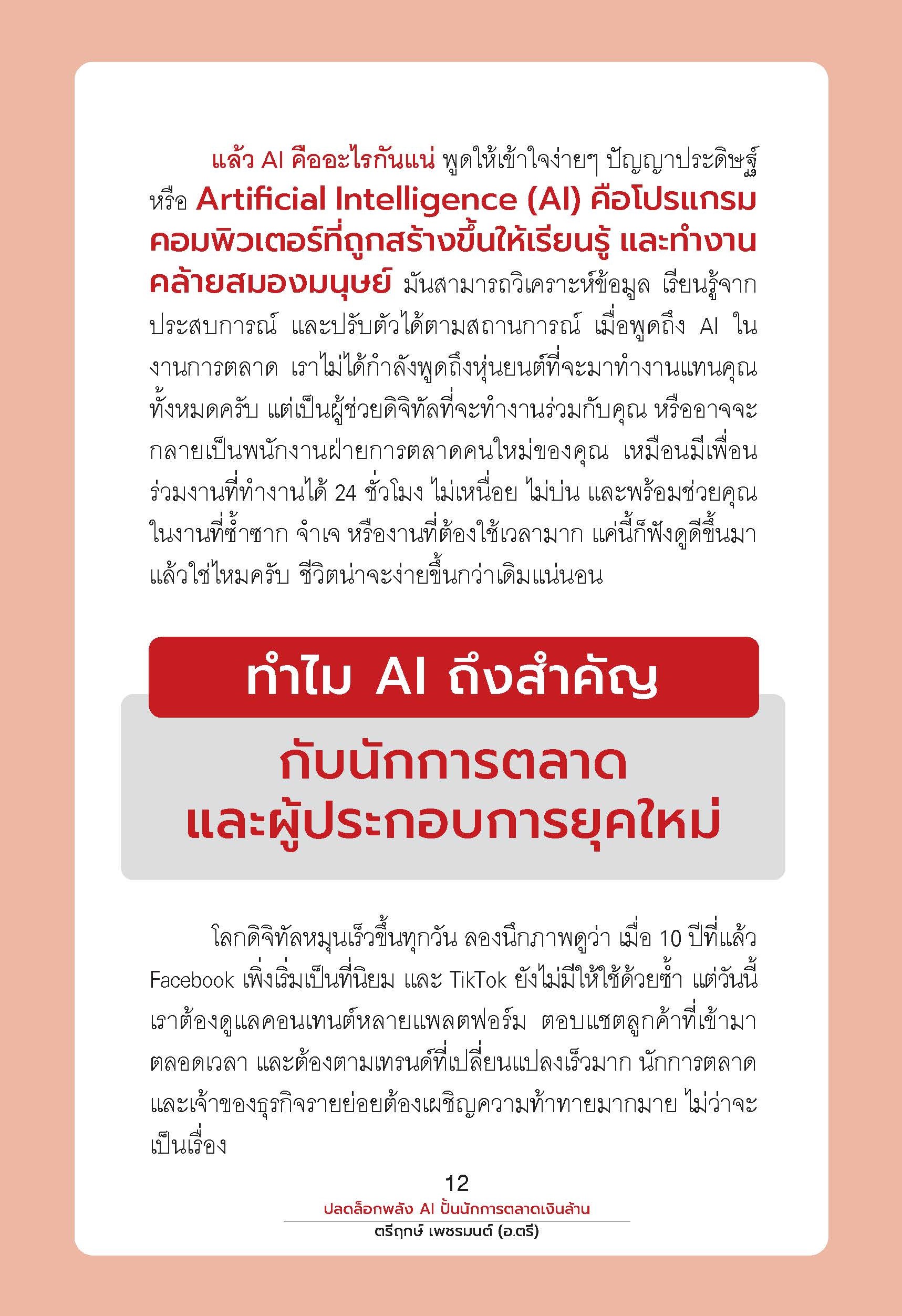 โลกของการตลาดกำลังเปลี่ยนไป คุณต้องไม่พลาดโอกาสนี้ ย้อนไปเมื่อไม่กี่ปีที่ผ่านมา การทำการตลาด สำหรับธุรกิจรายย่อยอาจจะยังพึ่งพาวิธีการแบบดั้งเดิมอยู่ครับ การโพสต์รูปสินค้าง่ายๆ บนโซเชียลมีเดีย การเขียนข้อความแนะนำผลิตภัณฑ์ด้วยตัวเอง หรือการออกแบบโฆษณาที่ใช้เวลาเป็นวันเป็นคืน แม้ว่าวิธีการเหล่านี้จะยังคงมีประโยชน์อยู่ แต่ในยุคที่เทคโนโลยี AI เข้ามามีบทบาทในชีวิตประจำวัน สิ่งที่เคยทำได้ยาก กลับกลายเป็นเรื่องง่าย สิ่งที่เคยใช้เวลานาน กลับทำได้ภายในไม่กี่นาที คุณเคยจินตนาการมั้ยครับ ถ้าวันหนึ่งคุณมีผู้ช่วยส่วนตัวที่สามารถคิดไอเดียการตลาดให้ เขียนข้อความโฆษณาที่น่าสนใจ วิเคราะห์กลุ่มเป้าหมาย แนะนำกลยุทธ์การตลาด หรือแม้แต่ช่วยออกแบบภาพโฆษณาที่สวยงาม และที่สำคัญผู้ช่วยคนนี้พร้อมทำงานให้คุณได้ 24 ชั่วโมง โดยไม่เหนื่อยล้า ไม่ขอเงินเดือน และพร้อมเรียนรู้สิ่งใหม่ ๆ อยู่เสมอ นี่ไม่ใช่เรื่องจินตนาการอีกต่อไปแล้วครับ เพราะ AI หรือ Artificial Intelligence ได้เข้ามาเปลี่ยนแปลงวิธีการทำการตลาดอย่างที่เราไม่เคยคิดมาก่อน ![]() ![]() ![]() ![]() ![]() ![]() ![]() ![]() ![]() ![]() ![]() ![]() ![]() ![]() ![]() ![]() |
