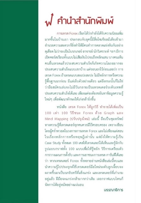 หนังสือเล่มนี้ ถือเป็นขุมทรัพย์ทางความรู้ที่เทรดเดอร์ทุกคนควรมีไว้ครอบครอง เพราะเขียนโดยผู้คร่ำหวอดในวงการการเทรด Forex และไม่เพียงแต่สอนในเรื่องหลักการหรือทฤษฎีเท่านั้น แต่ยังให้ความรู้เป็น Case Study ทั้งหมด 100 เคส ให้เทรดเดอร์ได้เห็นและรู้จักกับรูปแบบกราฟทั้ง 100 แบบ เพื่อให้รู้หลัก วิธีการเตรียมตัว การวางแผน การตั้งรับ และการเอาชนะการเทรด การันตีได้เลยว่า หากเทรดเดอร์ Forex ทั้งหลายอ่านหนังสือเล่มนี้จบ และนำความรู้ไปประยุกต์ใช้ เทรดเดอร์มือใหม่ระดับลูกเจี๊ยบจะผงาดขึ้นมาเป็นนกอินทรีย์ที่แข็งแกร่ง และเทรดเดอร์ที่เก๋าเกมอยู่แล้ว ฝีมือจะแกร่งกล้ามากกว่าเดิม เจอกราฟไหนก็จัดการอย่างอยู่หมัดได้อย่างแน่น่อน! ![]() ![]() ![]() ![]() ![]() ![]() ![]() ![]() ![]() ![]() ![]() ![]() ![]() ![]() ![]() ![]() |