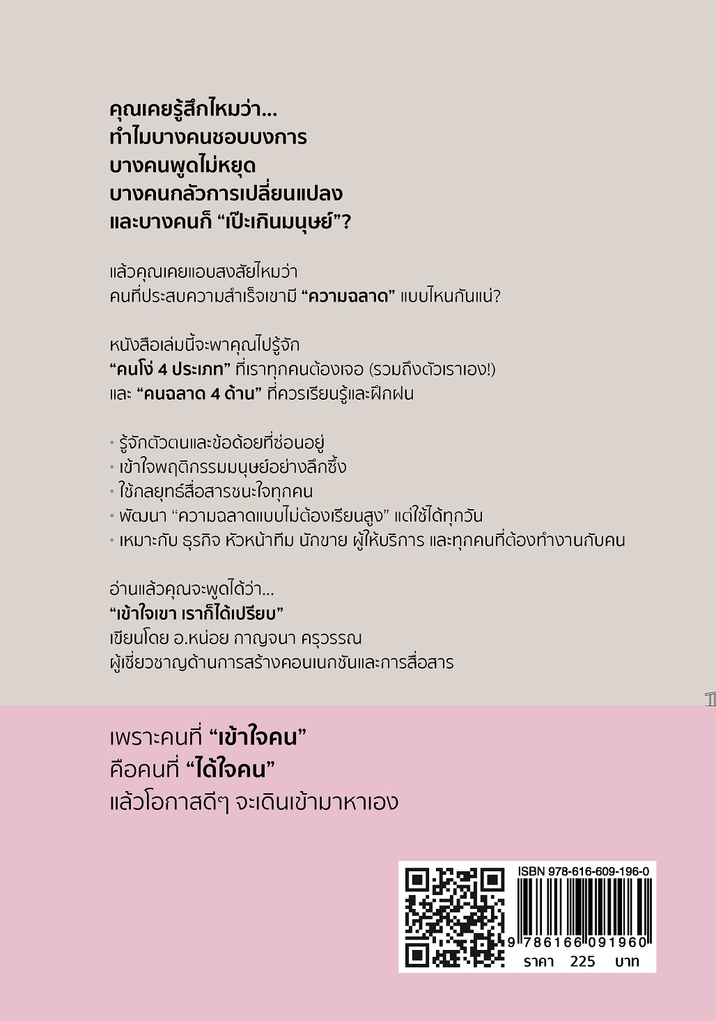หนังสือ “วิธีชนะใจคนโง่ 4 ประเภท และคนฉลาด 4 ด้าน” ถ่ายทอดประสบการณ์ตรงของผู้เขียนที่เคยต้องเผชิญกับคนหลากหลายรูปแบบ ไม่ว่าจะเป็นคนที่พูดไม่ฟัง กลัวการเปลี่ยนแปลง หรือไม่กล้าตัดสินใจ จนค้นพบว่าการจะชนะใจใครสักคน ไม่ได้อยู่ที่การพยายามเปลี่ยนเขา แต่คือการมองลึกเข้าไปถึงแรงจูงใจและความกลัวที่แท้จริงของเขา หนังสือเล่มนี้จึงเปรียบเสมือนคู่มือที่ช่วยให้ผู้อ่านเข้าใจคนประเภทต่างๆ และเลือกวิธีสื่อสารที่เหมาะสมเพื่อสร้างผลลัพธ์ที่ดีขึ้น ทั้งในชีวิตการทำงาน การขาย การบริหารทีม และความสัมพันธ์ในชีวิตจริง ![]() ![]() ![]() ![]() ![]() ![]() ![]() ![]() ![]() ![]() ![]() ![]() ![]() ![]() ![]() ![]() |