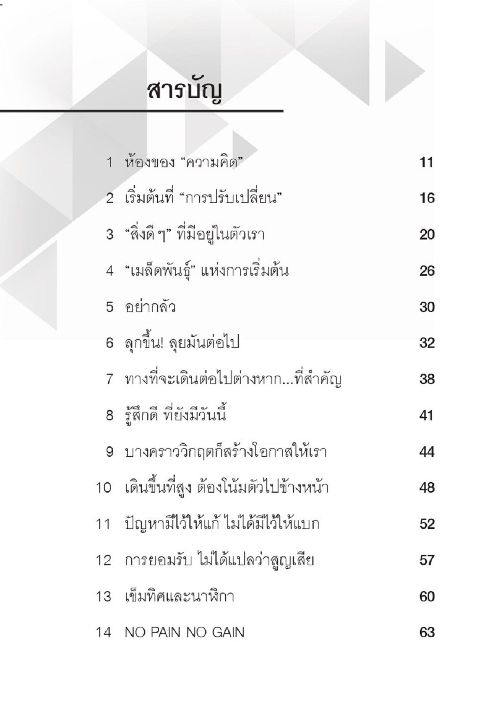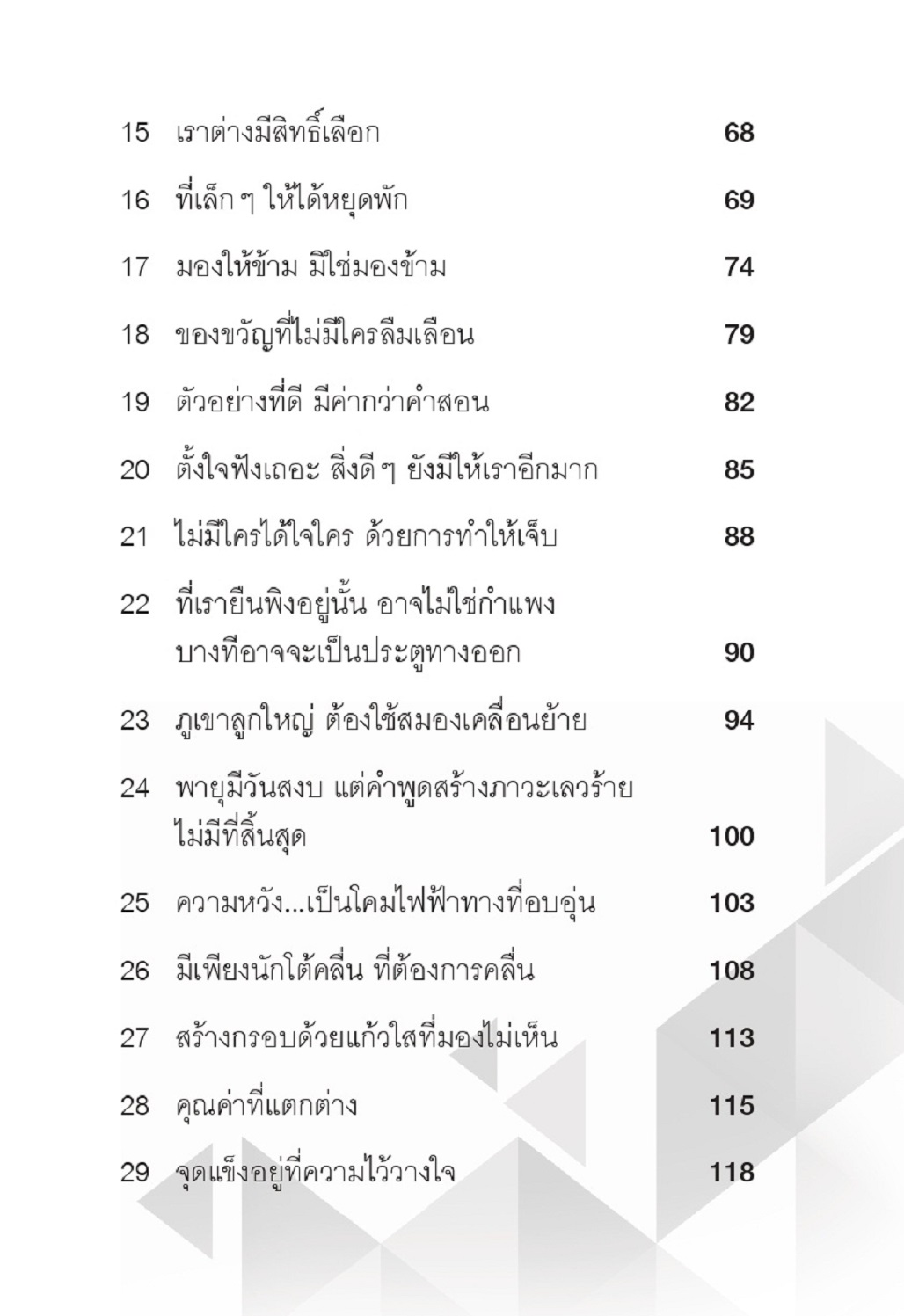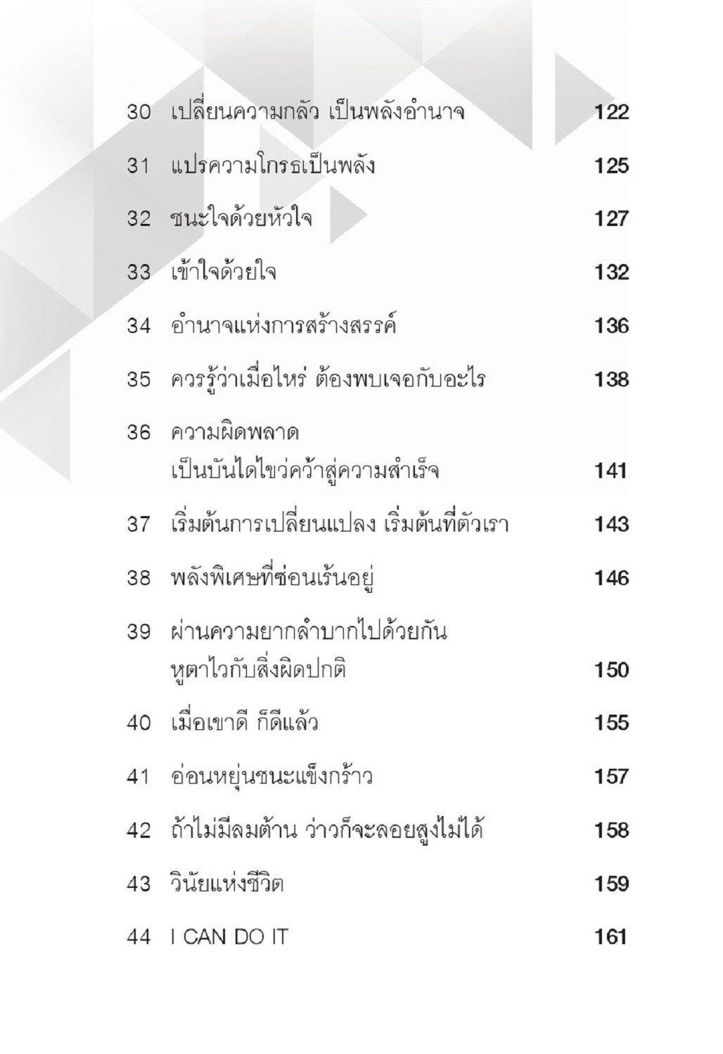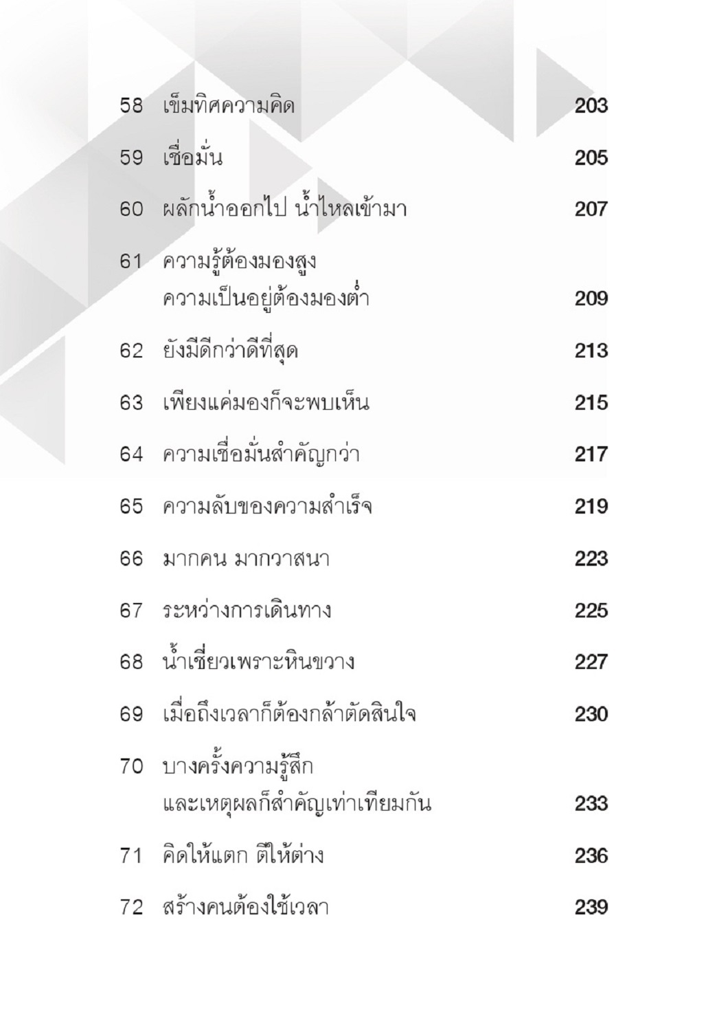 หัวใจของงานคุณมีอะไรบ้าง ลำดับความสำคัญเป็นอย่างไร จงมองทะลุผ่านงานที่ทำประจำอยู่ในแต่ละวันเพื่อหาจุดที่สามารถปรับปรุงได้ทั้งในงานและในหน่วยงานของคุณ ส่วนมากแล้วเรามักจะทำงานไปวันๆ โดยไม่คิดอะไรมาก จงคิดเสียงบ้าง จัดเป้าหมายงานและชีวิตให้เหมาะสมอยู่เสมอ เริ่มต้นที่ความคิด ก้าวหน้าที่การปฏิบัติอย่างต่อเนื่องและมุ่งมั่นไม่ย่อท้อ เรียนรู้บทเรียน แนวคิด และเคล็ดลับในการสร้างตัว-สร้างชีวิต กว่า 101 บทเรียนได้ภายในหนังสือเล่มนี้ ![]() ![]() ![]() ![]() ![]() ![]() ![]() ![]() ![]() ![]() ![]() ![]() ![]() ![]() ![]() ![]() |