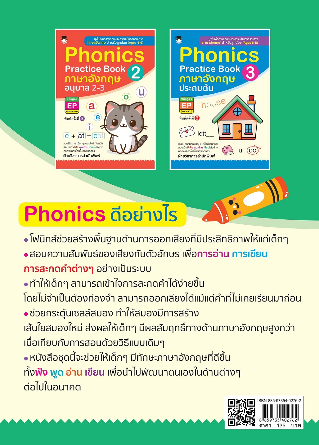 Phonics ดีอย่างไร โฟนิกส์ช่วยสร้างพื้นฐานด้านการออกเสียงที่มีประสิทธิภาพให้แก่เด็กๆ สอนความสัมพันธ์ของเสียงกับตัวอักษร เพื่อการอ่านการเขียน การสะกดคำต่างๆ อย่างเป็นระบบ ทำให้เด็กสามารถเข้าใจการสะกดคำได้ง่ายขึ้น โดยไม่จำเป็นต้องท่องจำ สามารถออกเสียงได้ แม้แต่คำที่ไม่เคยเรียนมาก่อน ช่วยกระตุ้นเซลล์สมอง ทำให้สมองมีการสร้างเส้นใยสมองใหม่ ส่งผลให้เด็กๆ มีผลสัมฤทธิ์ทางด้านภาษาอังกฤษสูงกว่า เมื่อเทียบกับการสอนด้วยวิธีแบบเดิมๆ หนังสือชุดนี้จะช่วยให้เด็กๆ มีทักษะภาษาอังกฤษที่ดีขึ้น ทั้งฟัง พูด อ่าน เขียน เพื่อนำไปพัฒนาตนเองในด้านต่างๆ ต่อไปในอนาคต ![]() ![]() ![]() ![]() ![]() ![]() ![]() ![]() ![]() ![]() ![]() ![]() ![]() ![]() ![]() ![]() |